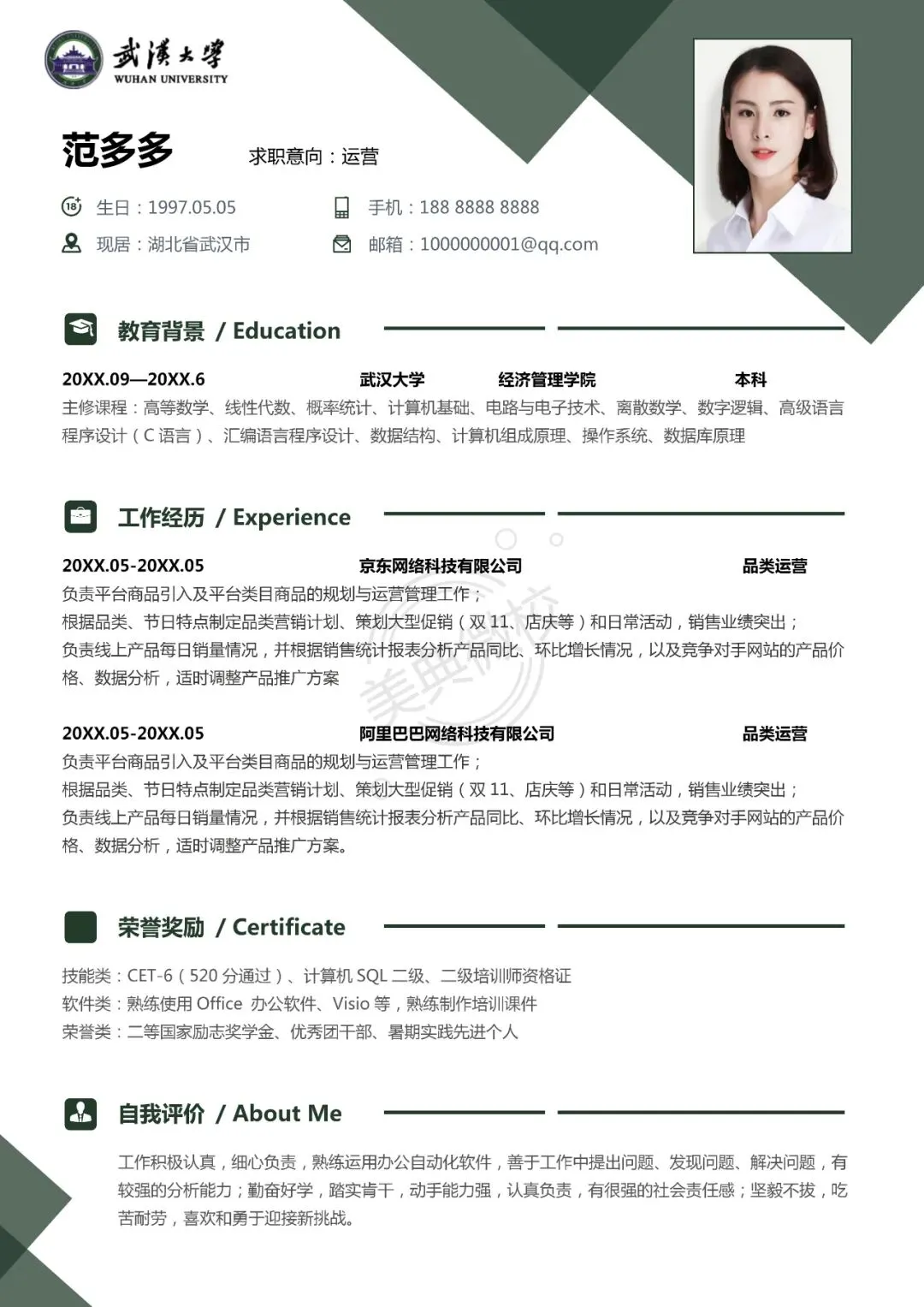 你可以根据自己想应聘的岗位和实际需求,直接进行修改,与岗位匹配。