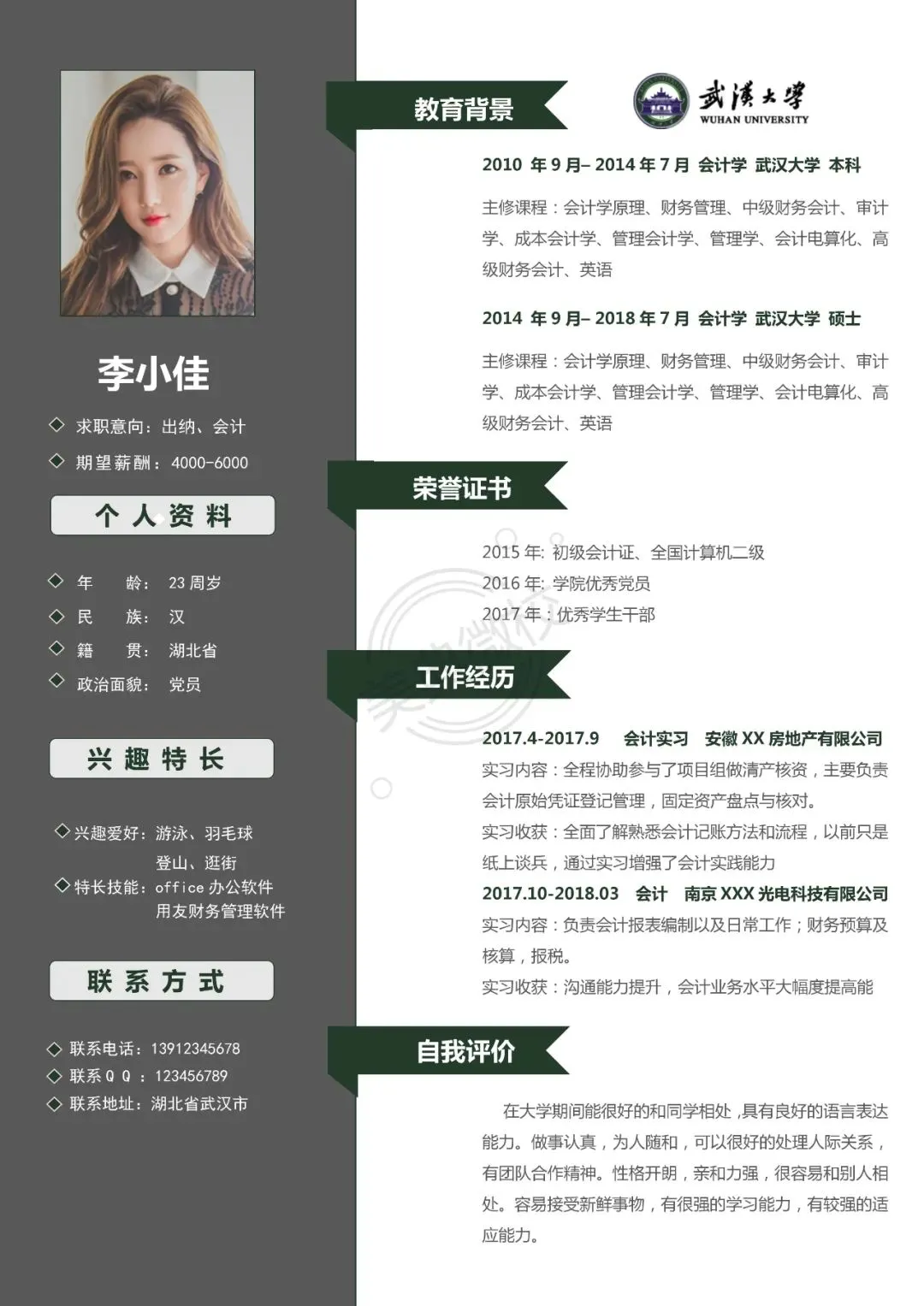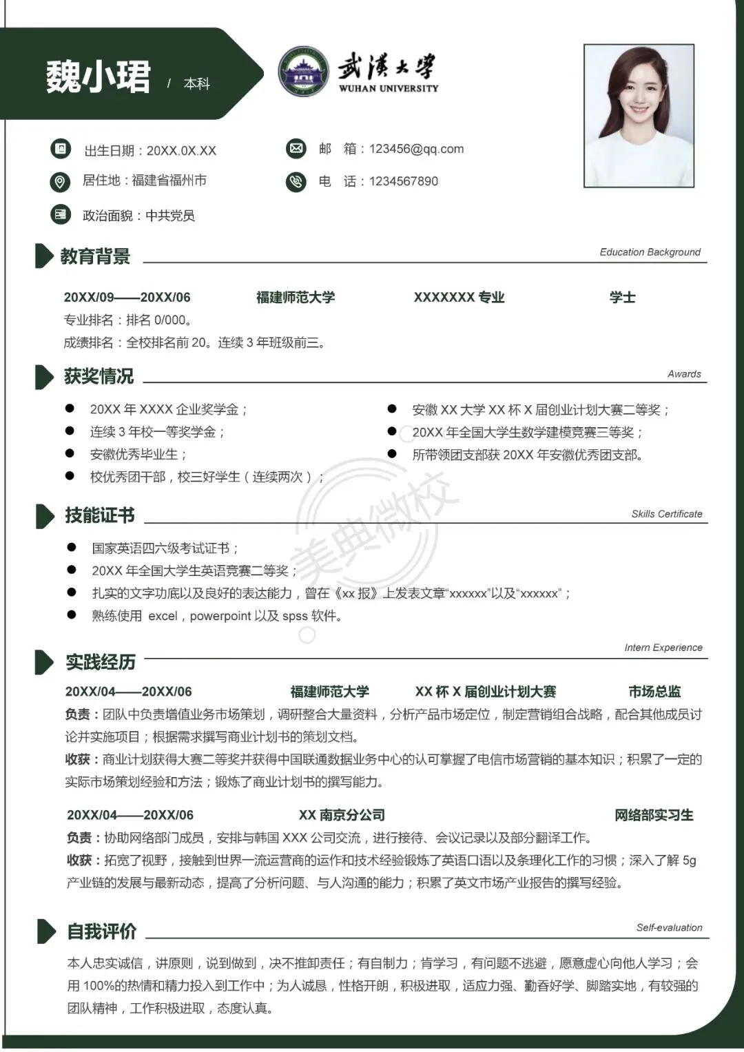 武汉大学专属简历模板来啦!陪你从武大到毕业!