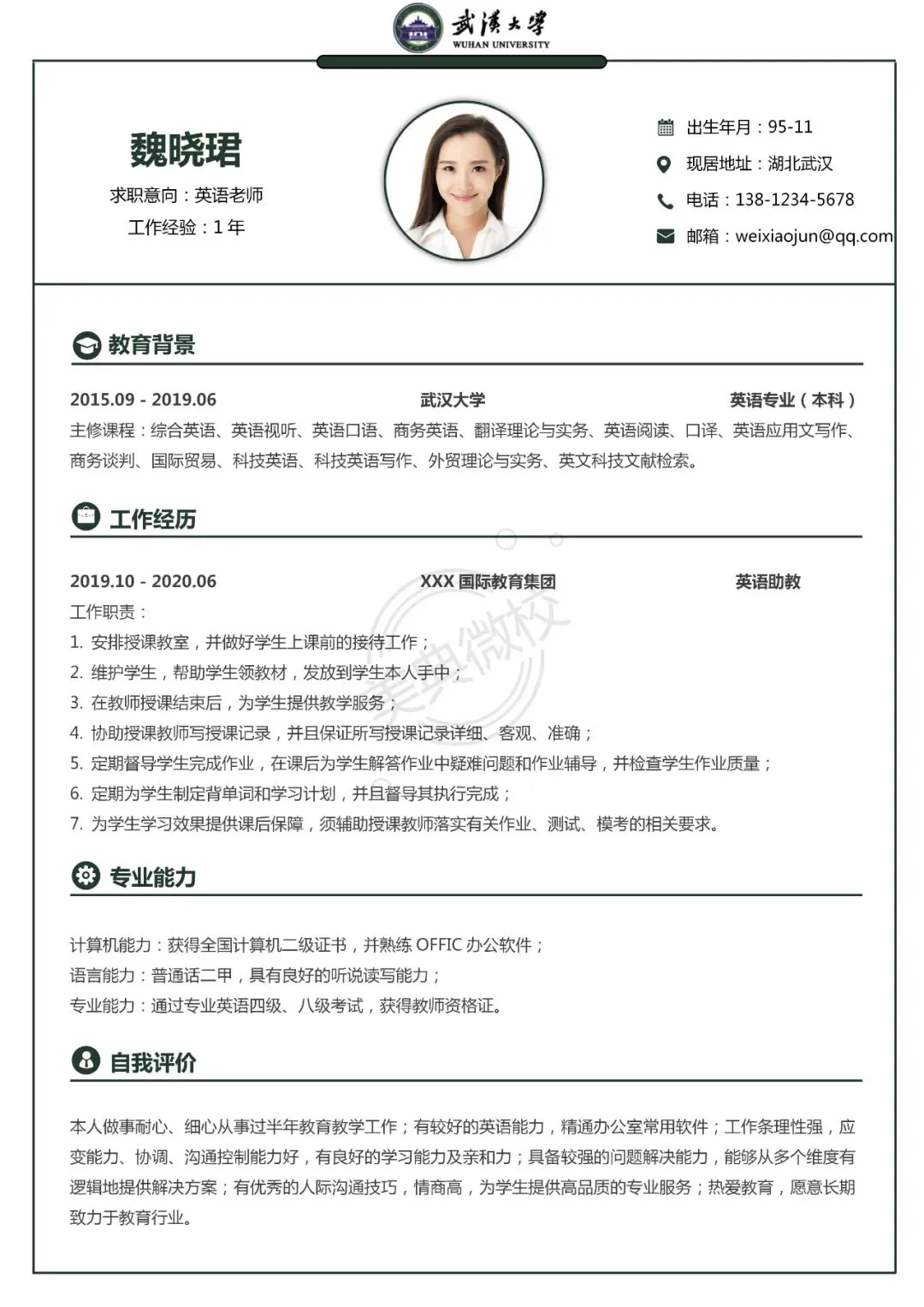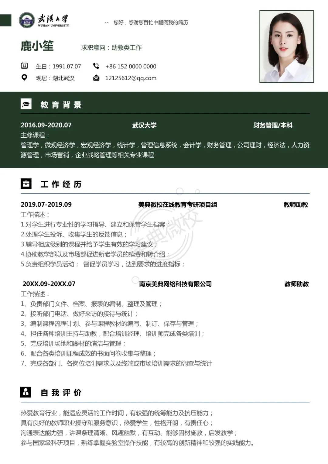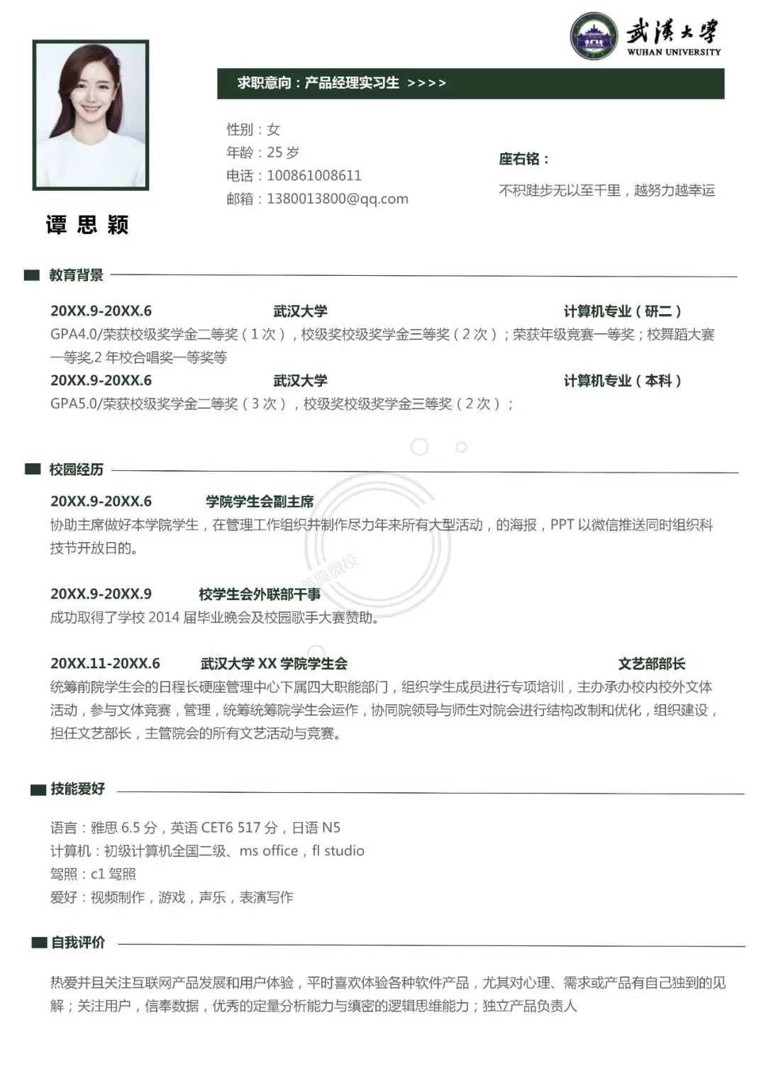 武汉大学专属简历模板