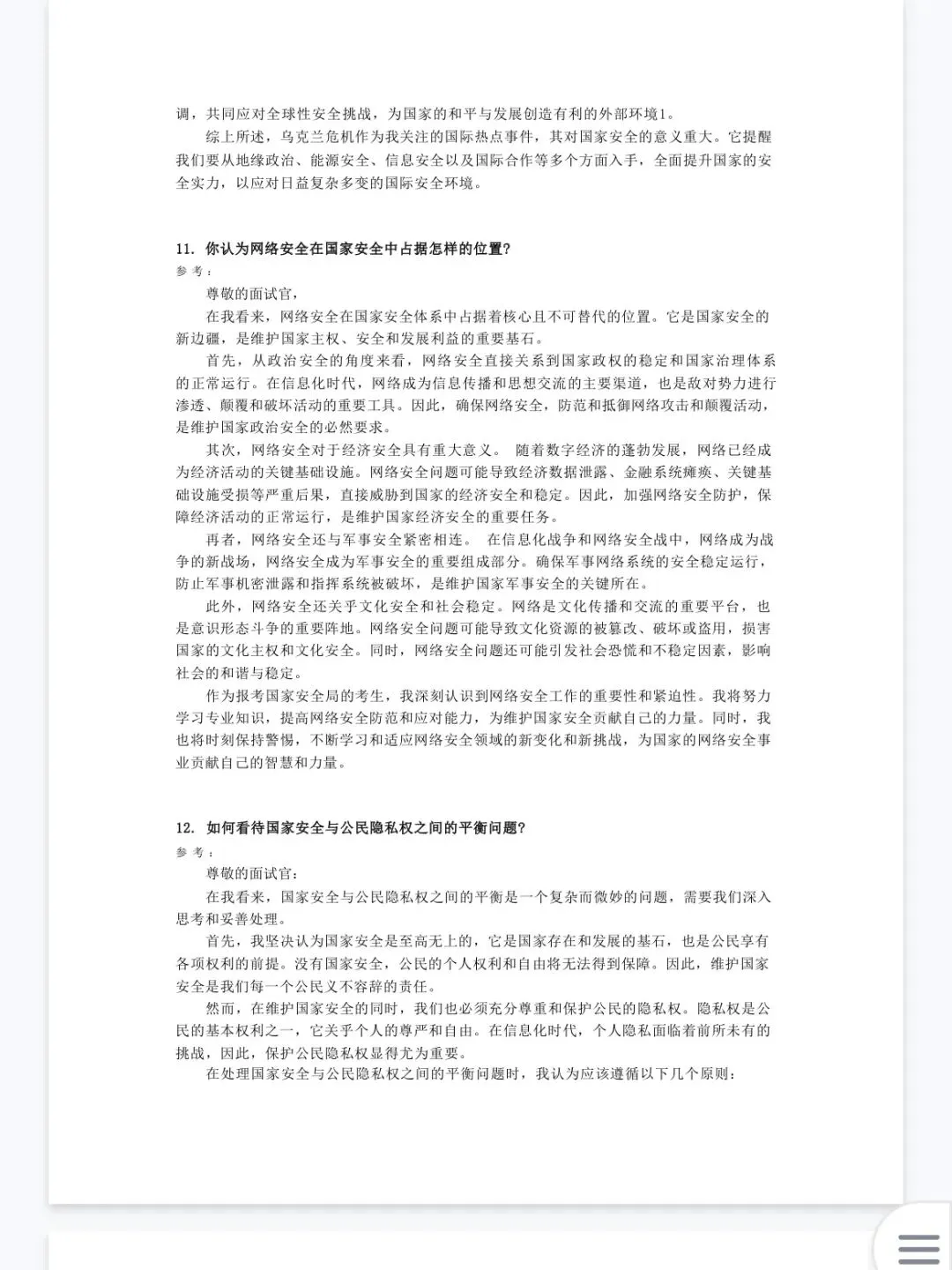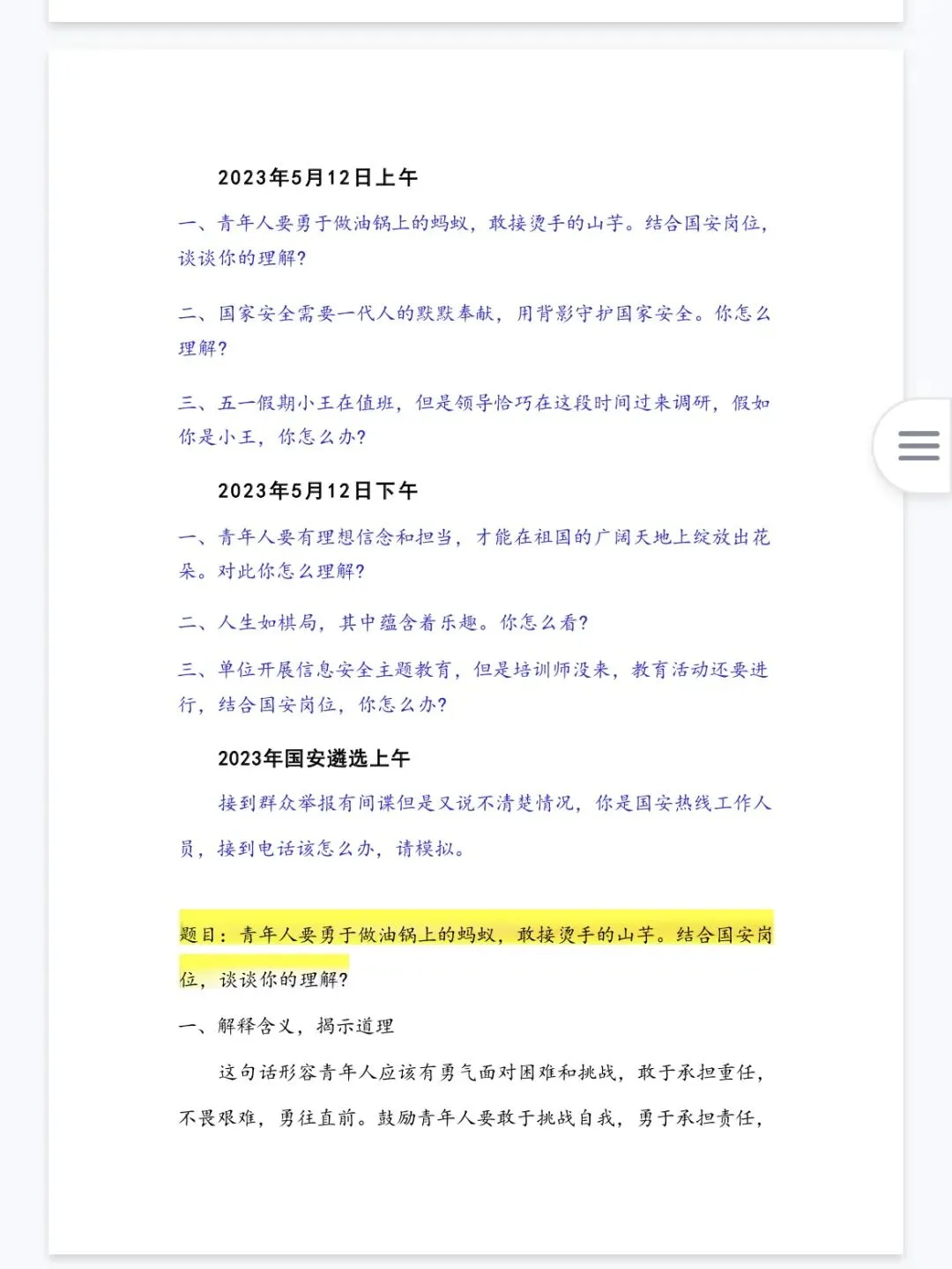 国家an全局面试真题及答案解析及工作内容常识模拟面试题资料包