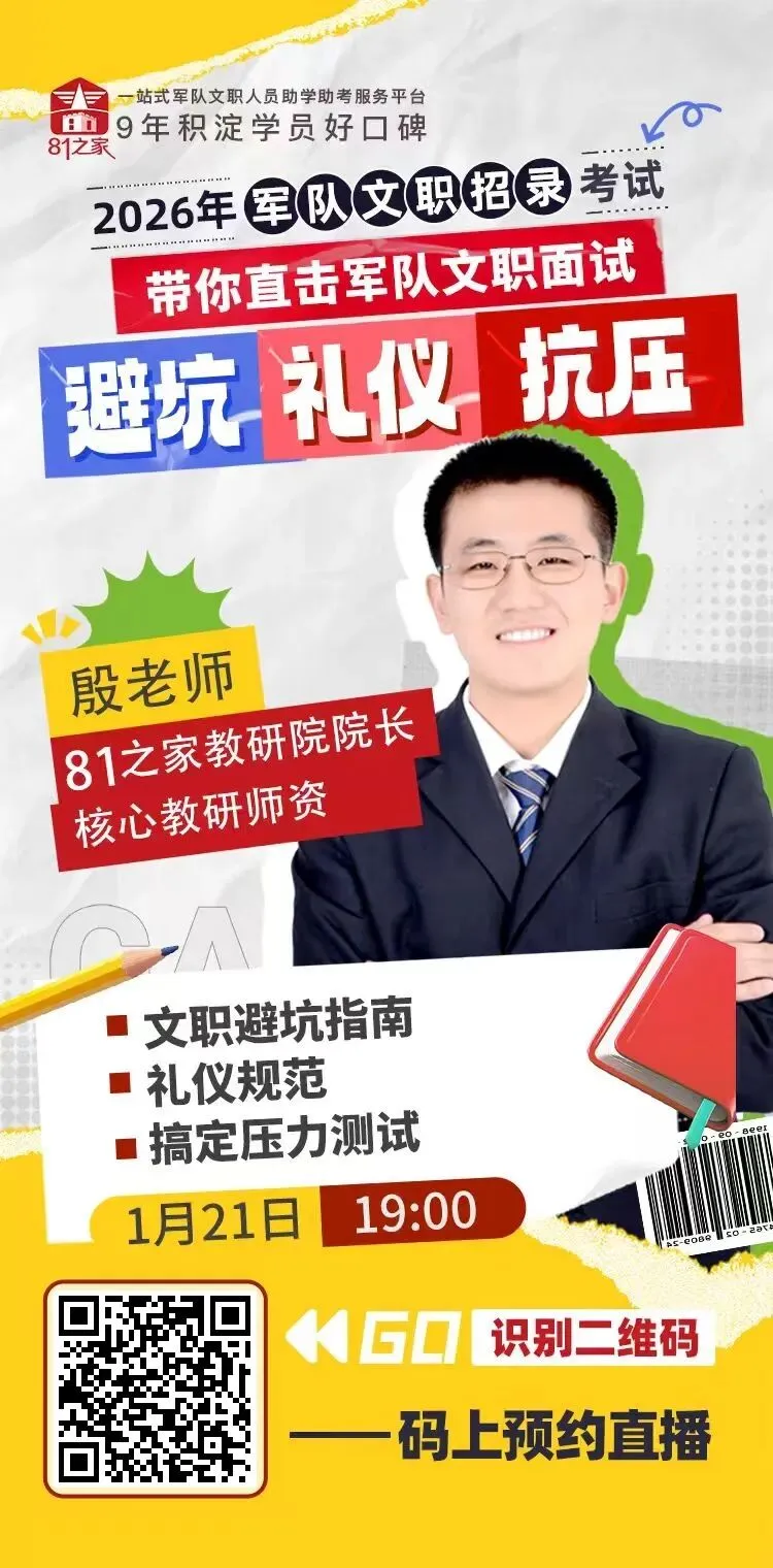 别慌!81之家专属军队文职面试急救直播课,精准破局来袭!专为备考2026军队文职面试的考生量身打造,直击核心痛点,手把手带你攻克面试难关。