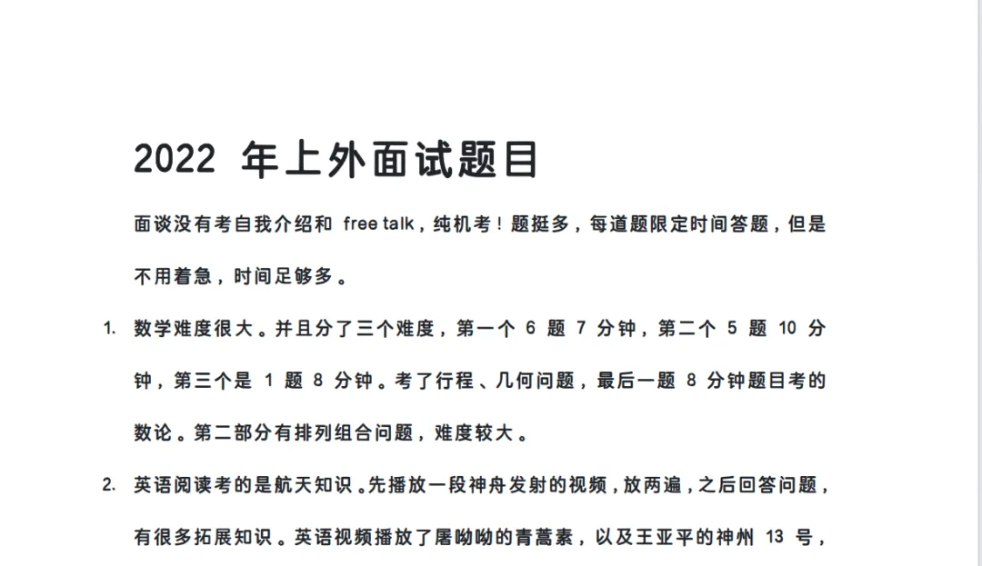 B05 近年上外面试真题