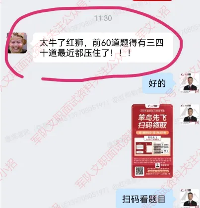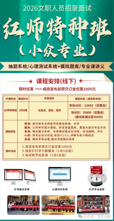 机会留给有准备的人!有关军队文职报考的任何问题,都可以添加红师蓬莱老师微信咨询。