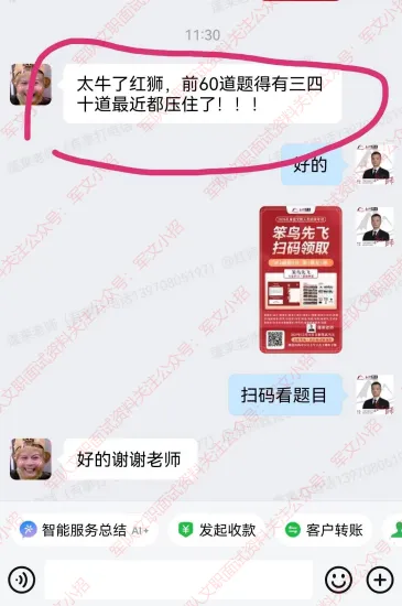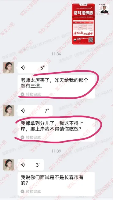 4、交定金后免费赠送由蓬莱老师组织的同类岗位在线模拟面试答题训练,在面试班结束之后到考试之前还有一段时间,蓬莱老师继续组织大家进行模拟面试,由蓬莱老师点评和同类岗位同学相互点评,这种形式在往年面试学员中非常受欢迎。(本项内容只限扫蓬莱老师二维码交定金的考友提供)