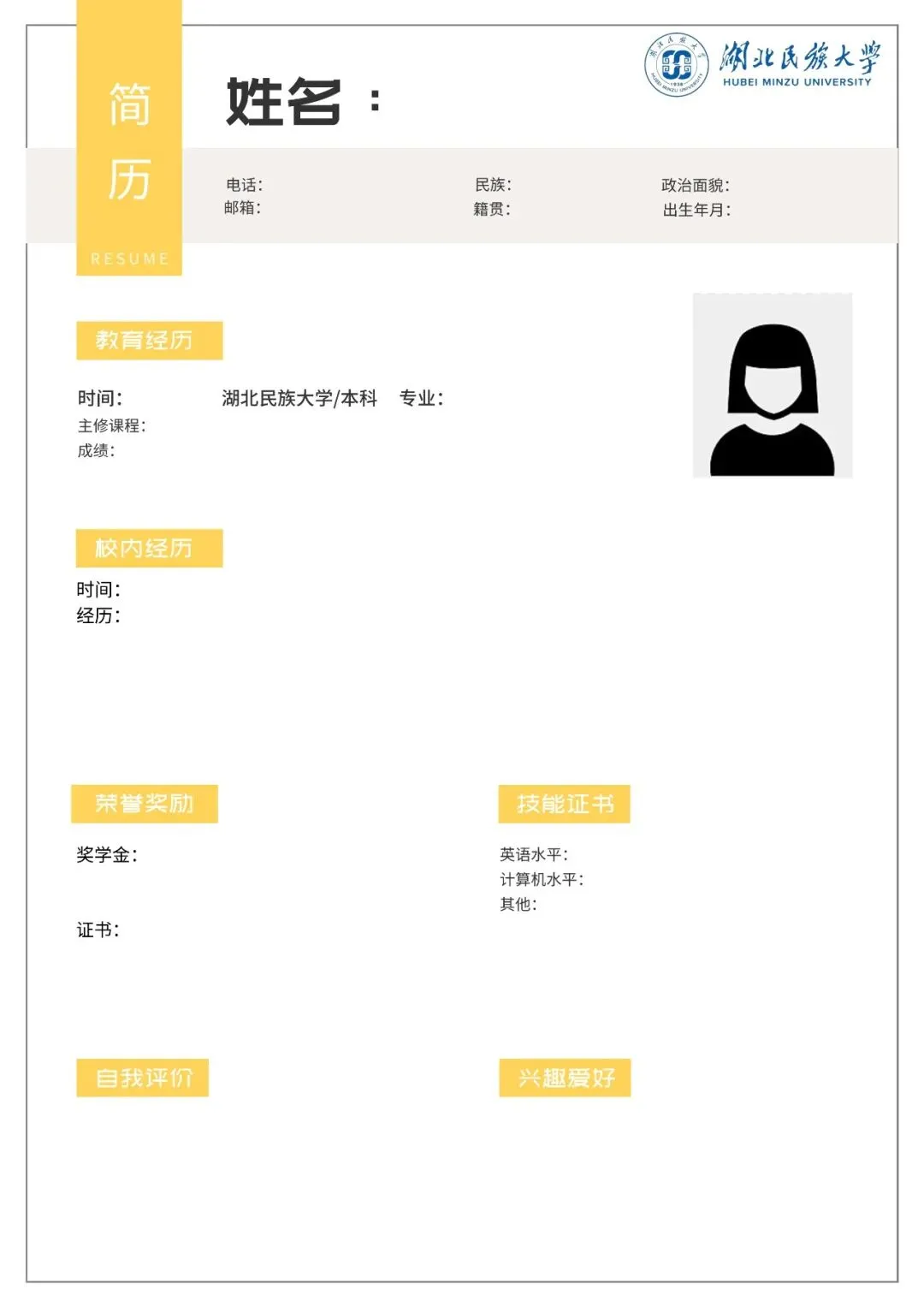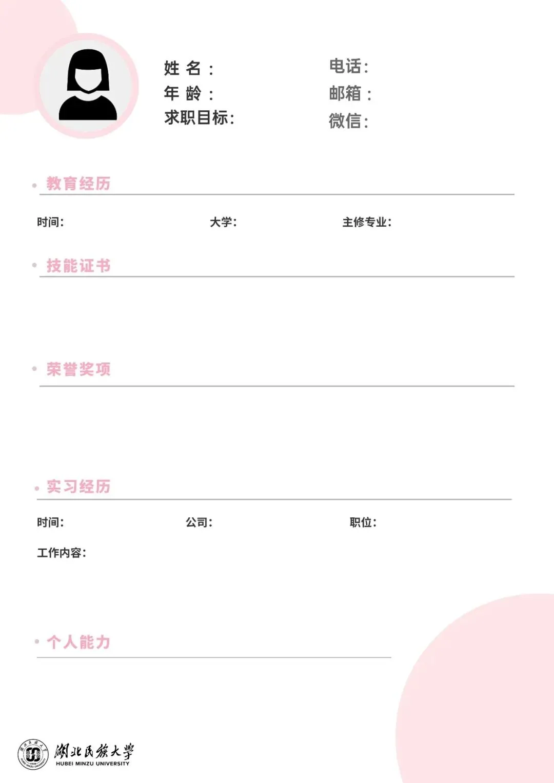 即刻领取民大专属简历