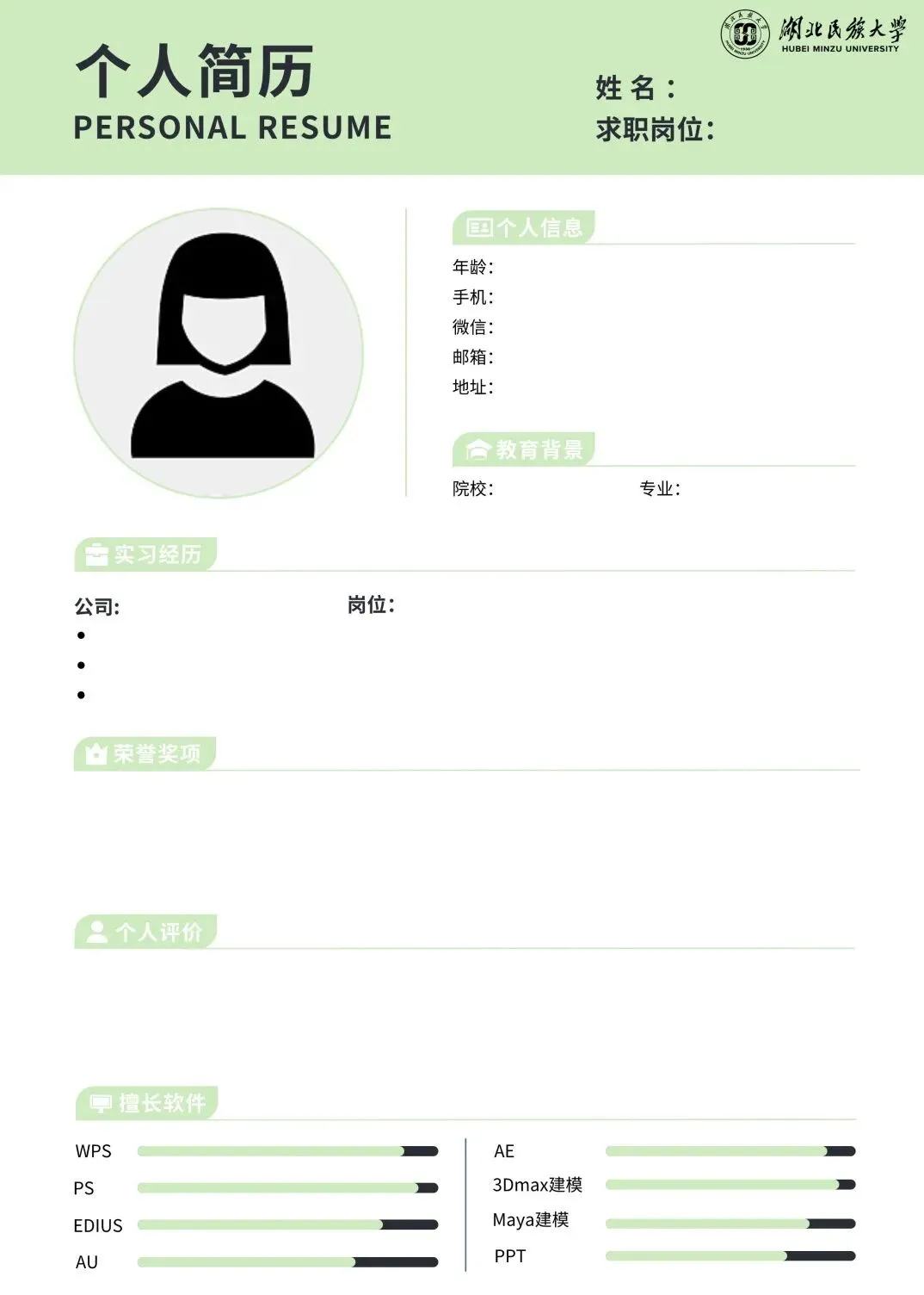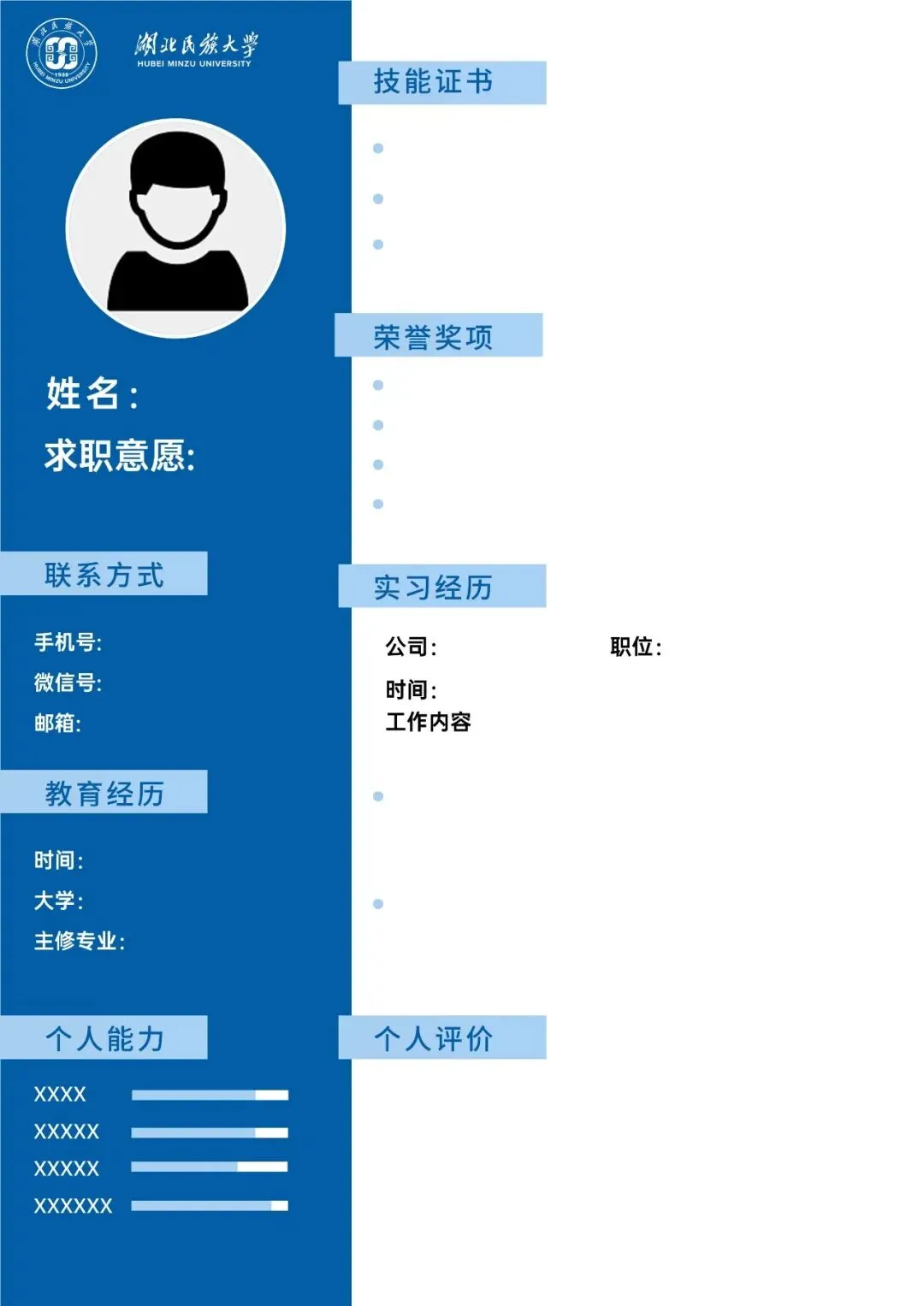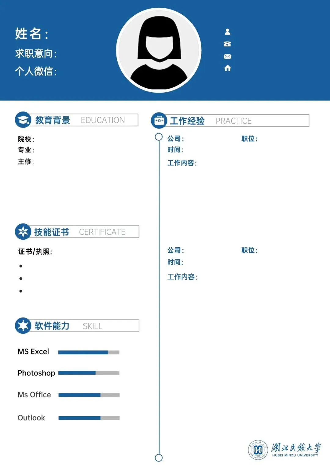 简历模板——民大蓝系列