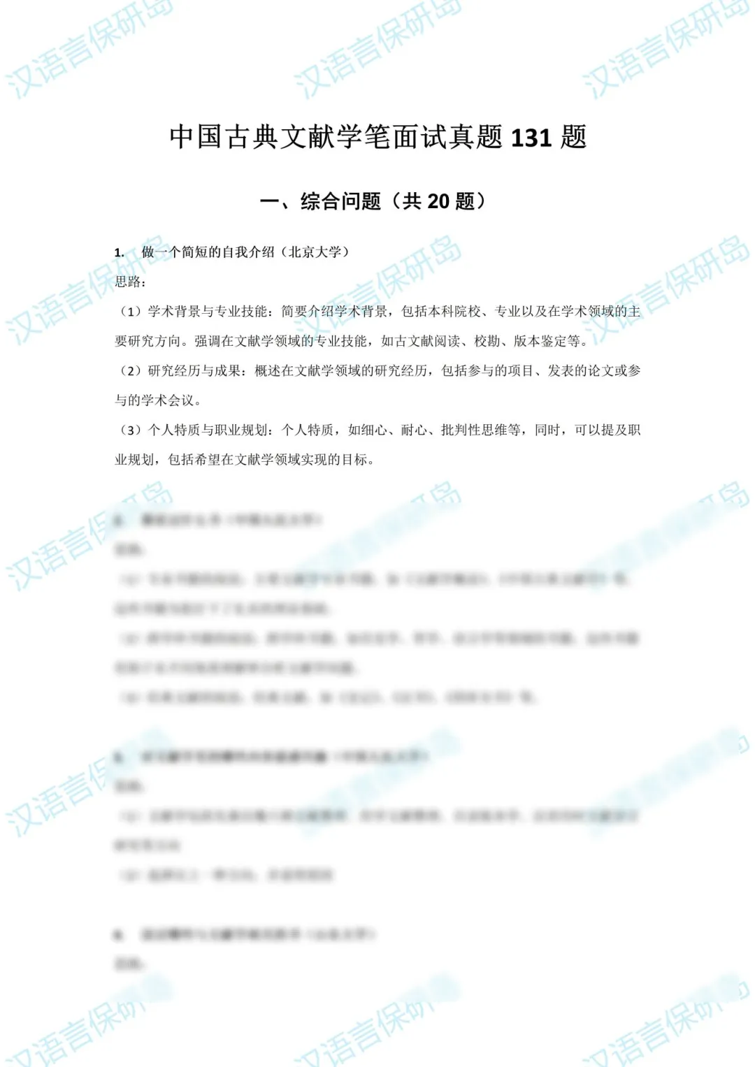 中国古典文献学笔面试真题131题