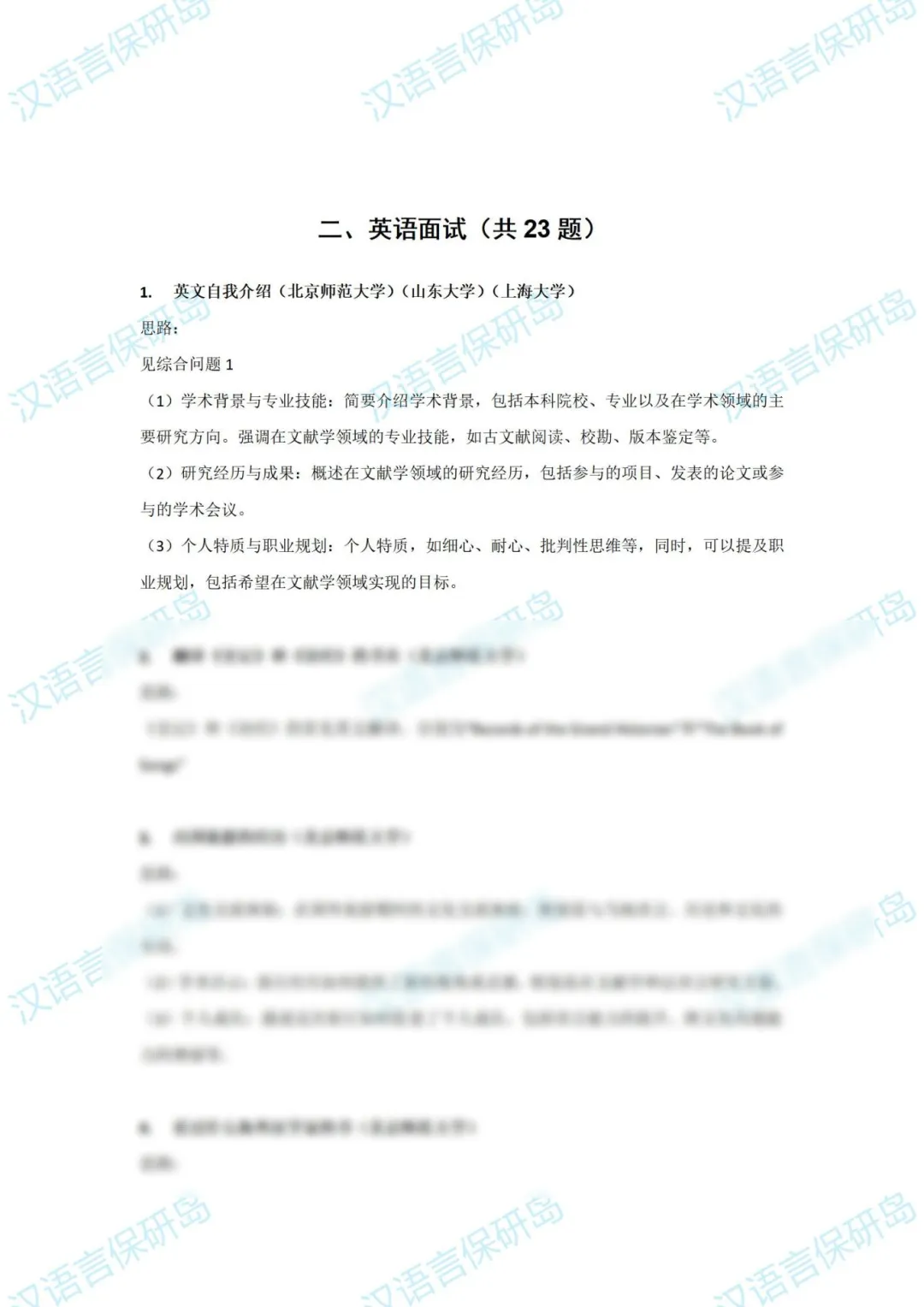 英语面试(部分展示)