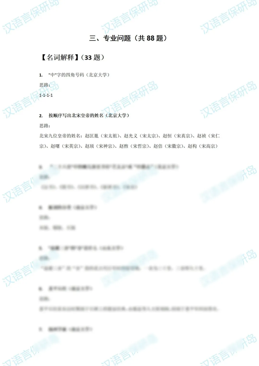 专业问题(部分展示)