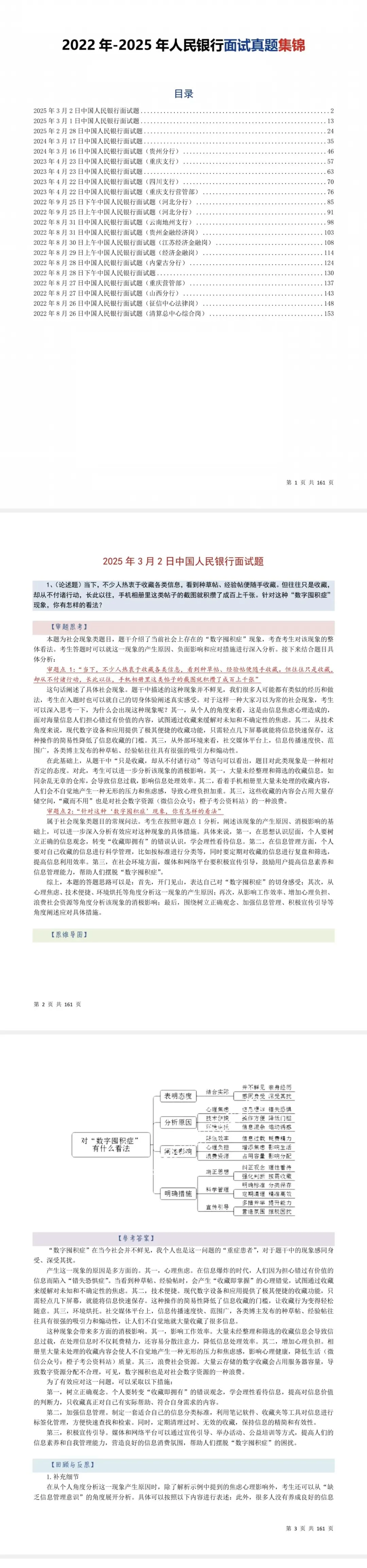 【银行】2022—2025人民银行21套面试真题汇总(均有解析逐字稿)