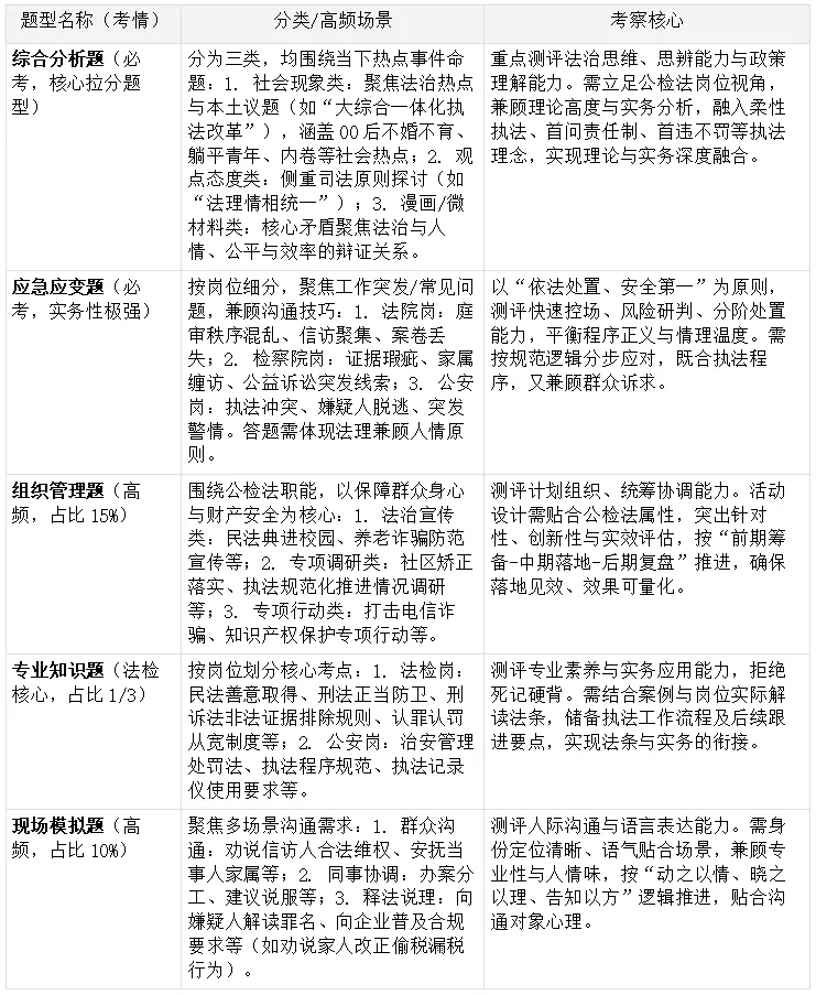 3.岗位差异化:法检岗侧重程序法、实体法应用与案例分析,公安岗聚焦执法规范化、突发警情处置,基层岗位更强调与群众沟通、基层治理适配性,无领导小组讨论岗重点考察组织协调、团队协作与说服能力。