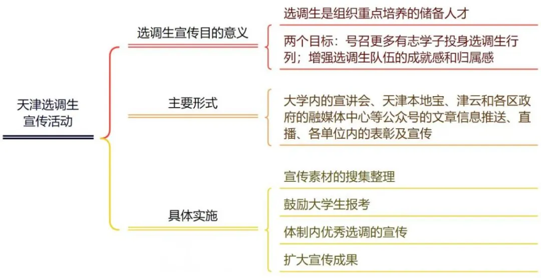为宣传天津选调生工作,开展“我是天津选调生”专项活动,涉及哪些活动形式,怎么组织?选调生作为组织重点培养的储备人才,对完善人才体系,优化行政系统,推动行政体制改革等有重要作用。这次的专门针对选调生的宣传我认为旨在达到两个方面的目标:一是通过宣传号召更多有志学子投身选调生行列,二是展现选调生整体风貌增强选调生队伍的成就感和归属感。