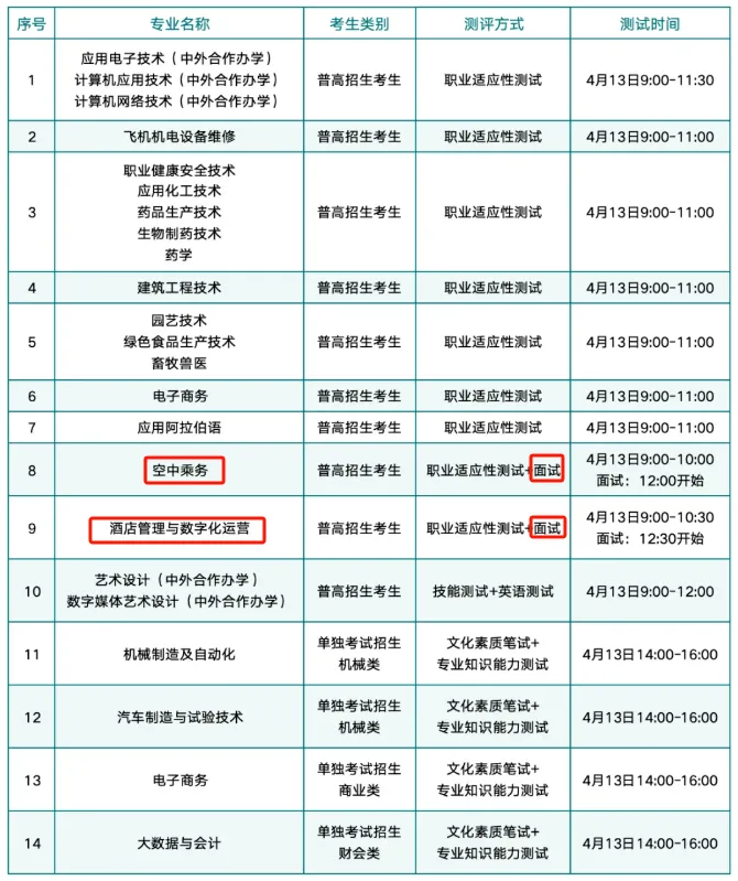 2.面试专业:空中乘务、酒店管理与数字化运营、建筑消防技术、智能建造技术