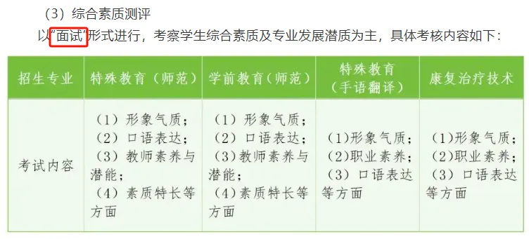 2.面试专业:特殊教育(师范)、学前教育(师范)、特殊教育(手语翻译)、康复治疗技术