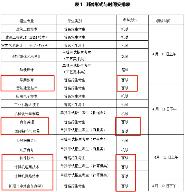 2.面试专业:软件技术、商务英语、智能建造技术、护理(中外合作办学)、早期教育