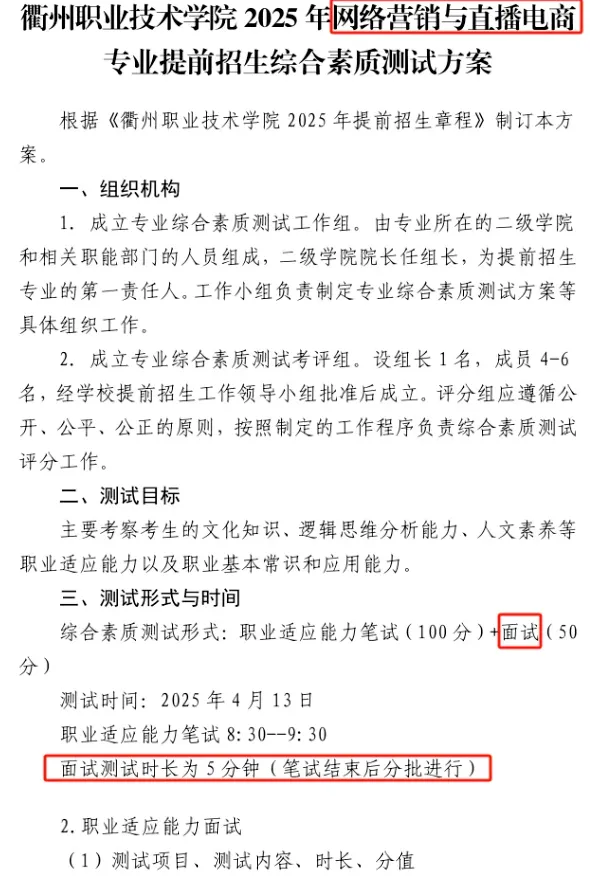 高职提前招生综合测试通常有笔试、机试、面试、操作等形式,其中面试较为普遍。学校往往会通过面试这一方式考察考生们的语言表达能力、应变能力、专业素质能力等。