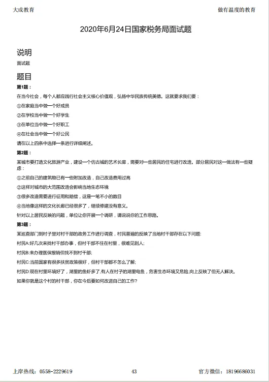国考面试|税务系统面试真题汇总(2020-2025年)