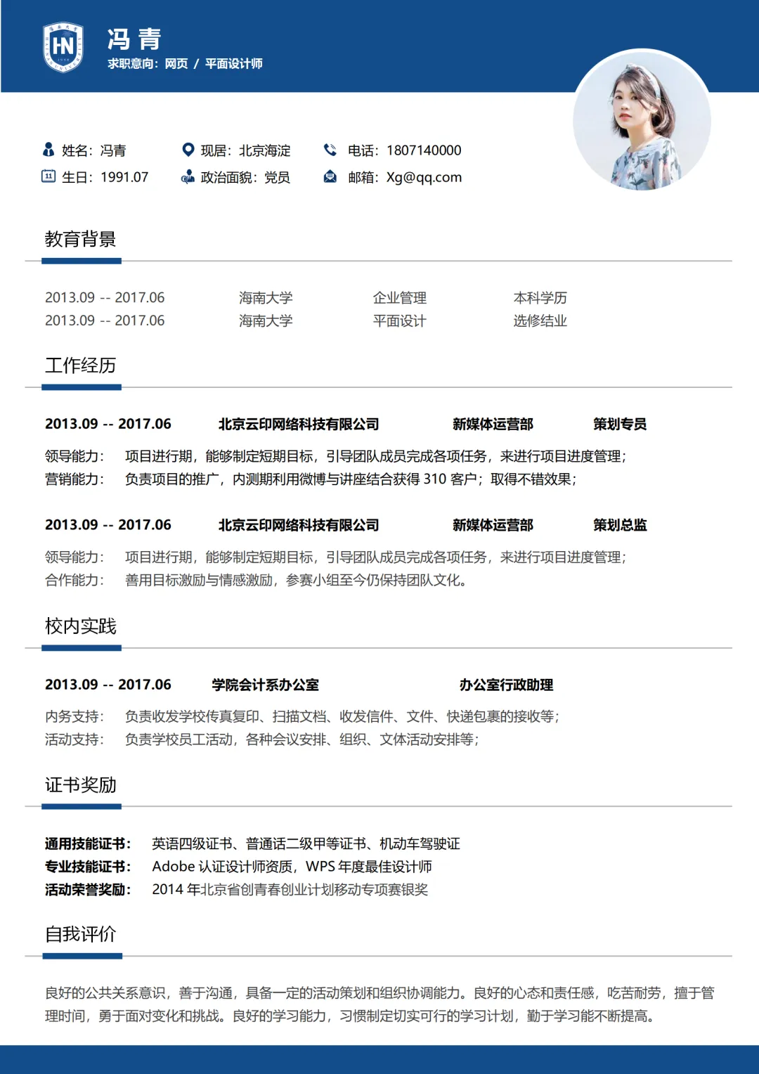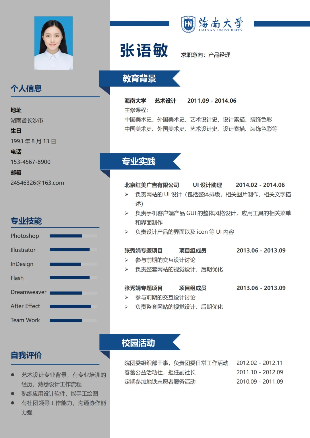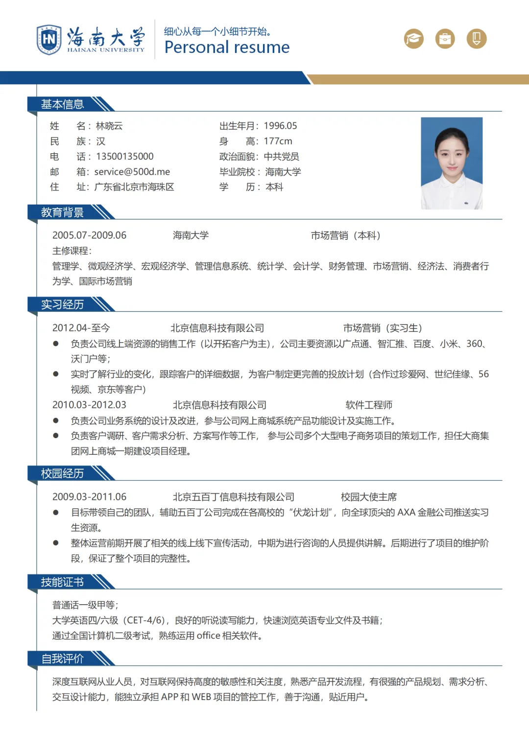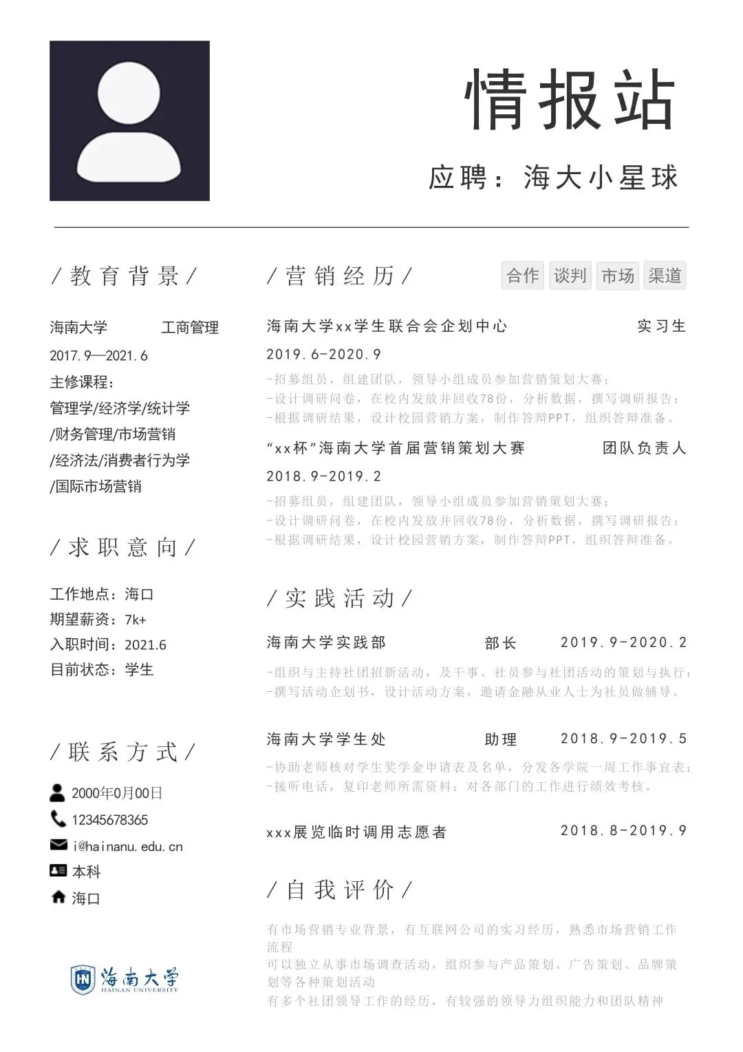 本次为海南大学简历