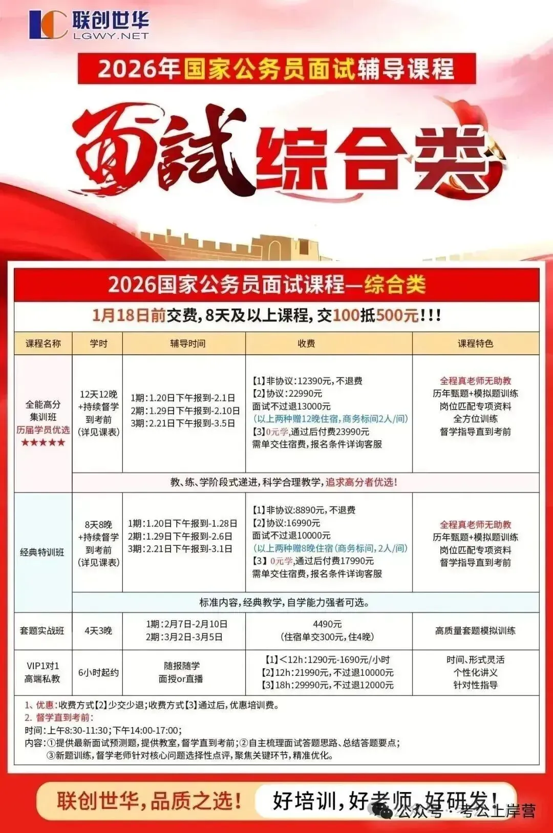 一、直到考前:春节后班:2月23日正月初七报到二、12天12晚:3期:1.23日报到【陈杰老师团队授课】,仅余1个名额!6期:2.2日报到【年前8天+年后4天,理论王华老师+模拟陈杰老师团队共同授课】7期:2.21日正月初五报到【郭旭老师团队授课】,仅余3个名额!8期:2月25日正月初九报到 三、8天8晚:2期:1.23日报到【陈杰理论主讲、王华老师团队授课】,仅余1个名额!4期:1.29日报到【陈墨老师团队授课】,仅余1个名额!5期:2.2日报到【理论王华老师+模拟陈杰老师团队共同授课】6期:2.21日正月初五报到【滕鸣谦老师团队授课】7期:2月25日正月初九报到四、在职特加班:8天8晚,王焕老师团队授课年前2.13-15日(12日下午报到,腊月二十六到二十八上课,3天3晚)年后2.20-24日(19日下午报到,正月初四到初八上课,5天4晚)五、套题实战班8天7晚:3月2日-3月9日【确定开课】六、《公安/监狱/戒毒专项班》12天12晚2期:1.24日报到【柳心田老师团队授课】,仅余1个名额!4期:2.21日正月初五报到【郭林老师团队授课】七、无领导小组专项班1期:2月9日-2月11日2期:3月9日-3月11日八、VIP1对1高端私教,随时可约