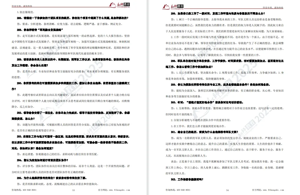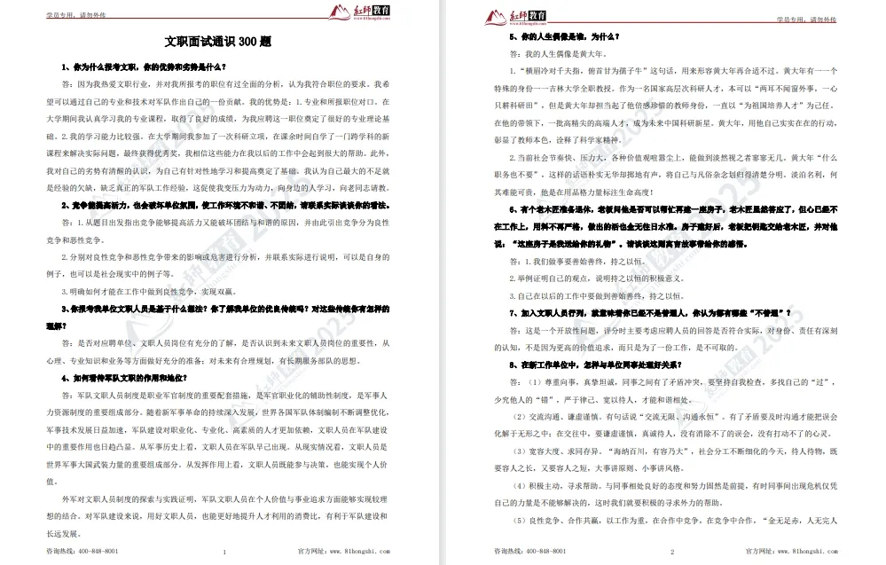 第 1 题:你对军队文职了解多少?你为什么要报考本岗位?