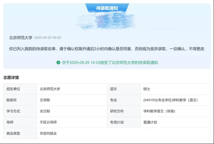 央民教育学院的复试名单和成绩公布的时间都晚于他们通知的时间,所以大家一定要做好心理准备,在等待的过程中不要太焦虑,多把时间花在复习上。央民教育学院学语往年都是线上夏令营,今年是第一次改成了线下预推免,我也是在面试当天才知道是抽题面试,大家不要因为是抽题就感到恐惧害怕,所有人面临难度都是差不多的,在面试过程中保持沉着冷静,大方自信地展示自己,结果一定不会差的。央民公布通知的时间是非常极限的,如果是线下面试,大家就尽量住在学校附近,这样不用因为通勤而耽误面试时间。
