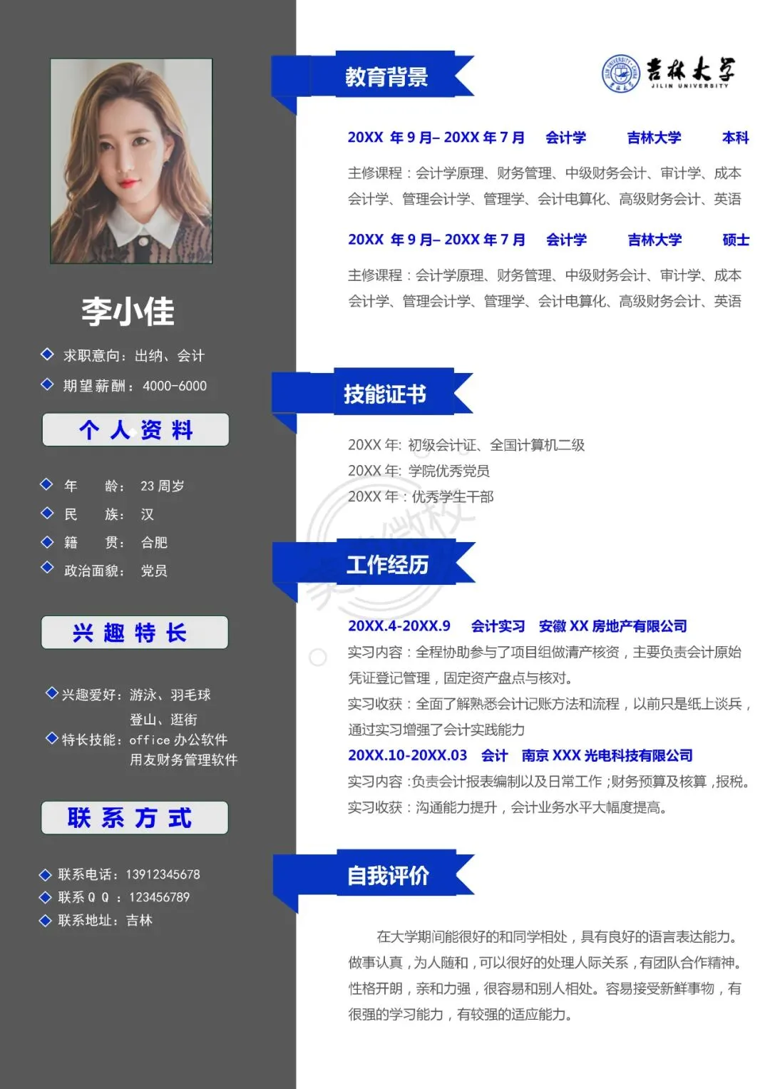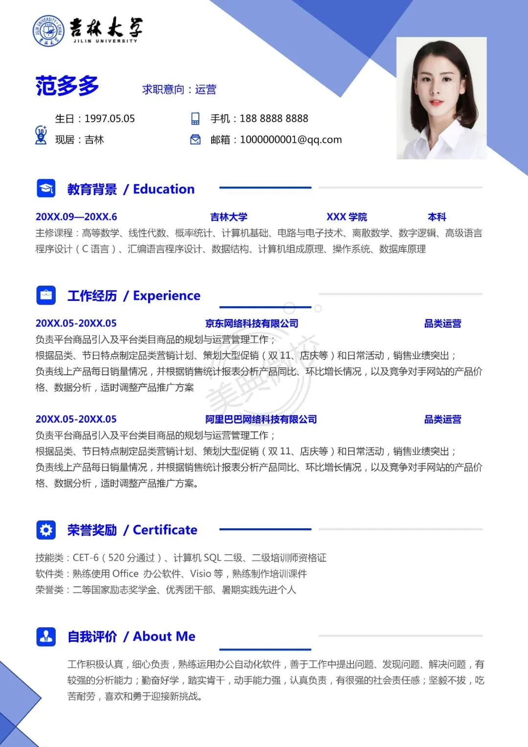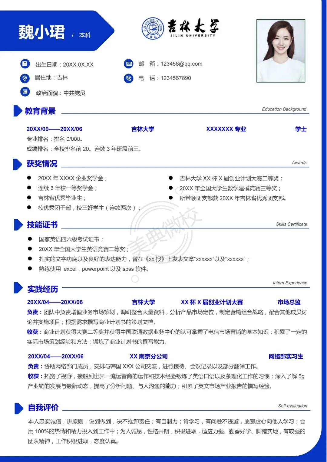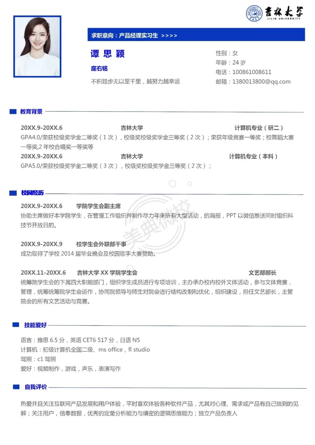 吉林大学专属简历模板