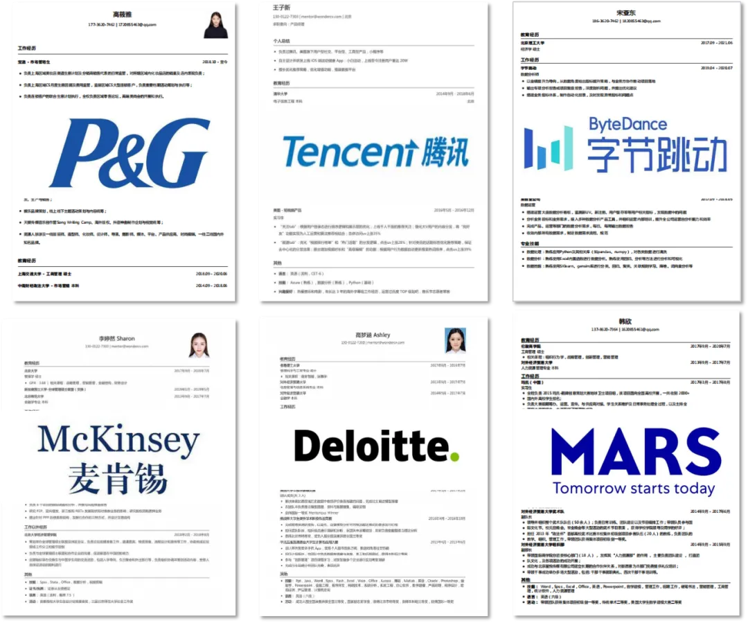 等名企的真人简历