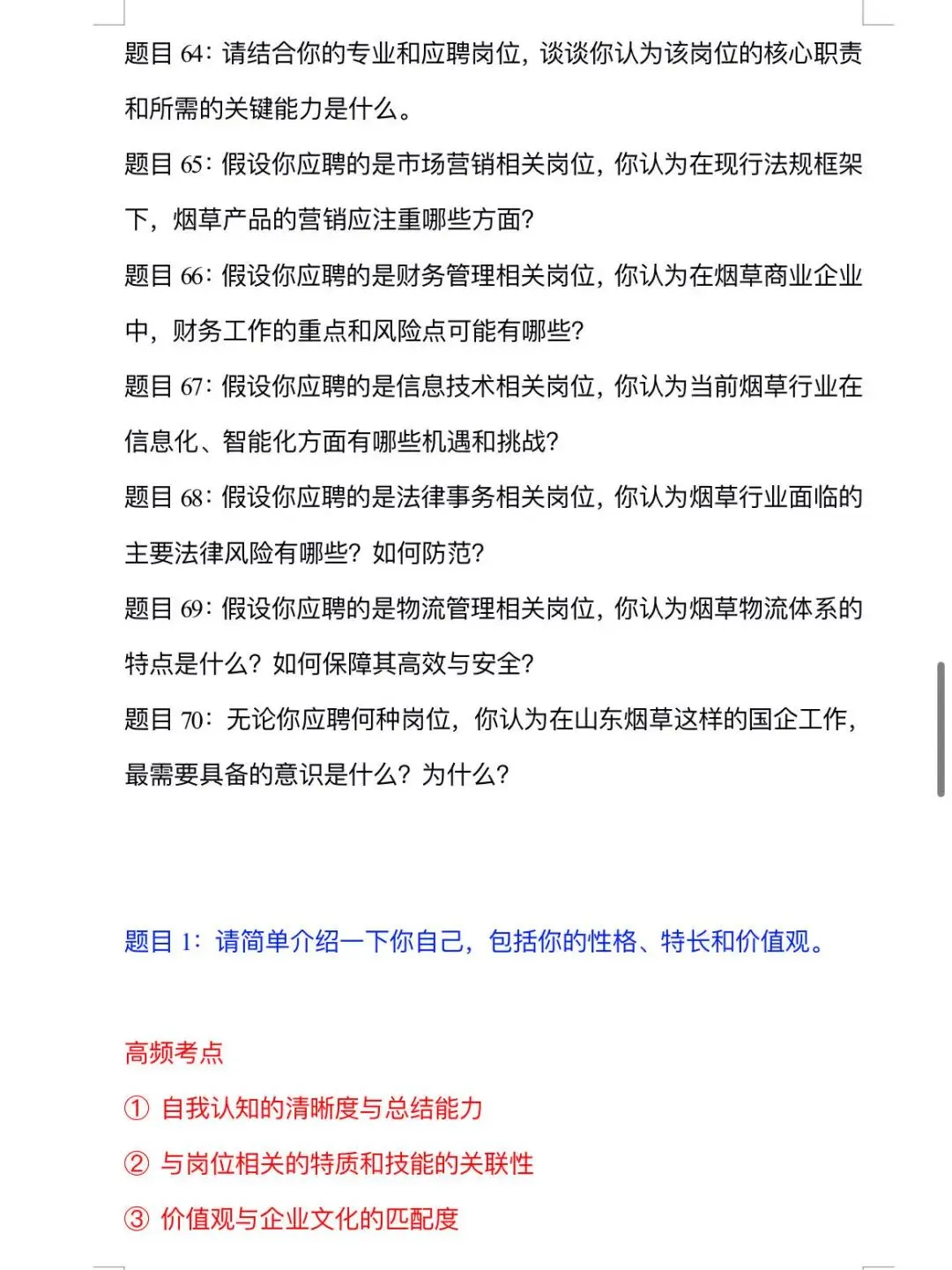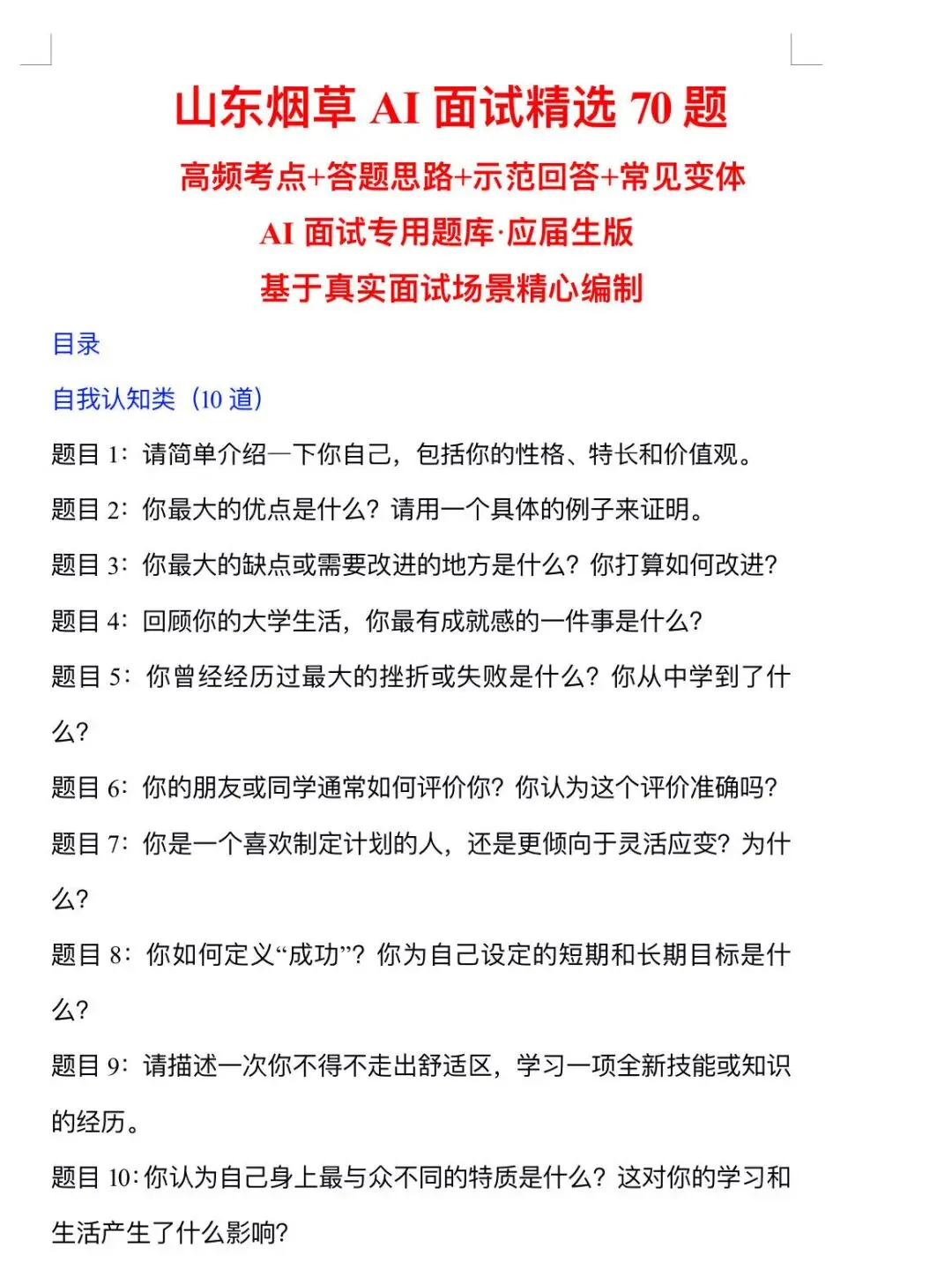 🌷面试资料:①山东烟草AI面试精选70题(6大类高频考点+答题思路+示范回答)