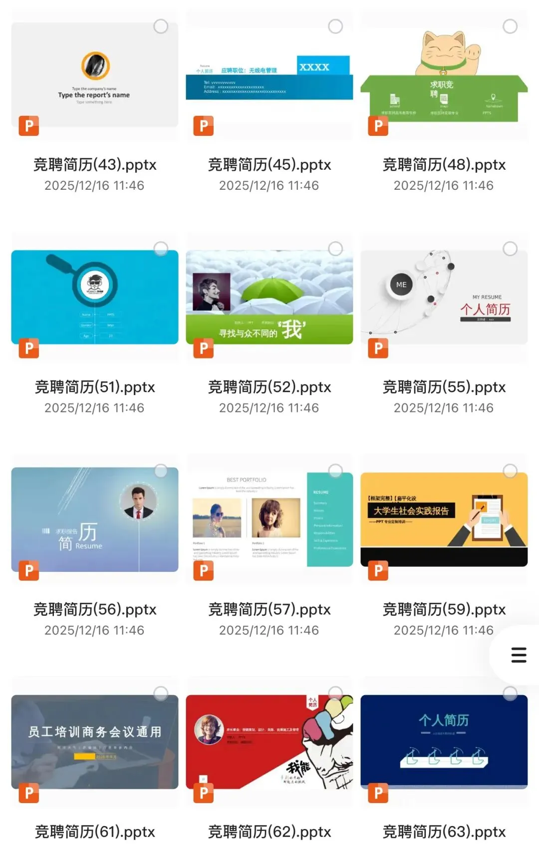 不管是应届生求职、大学生实习,还是职场人跳槽、日常工作汇报,一份精致的个人简历PPT,永远是你的加分项。但找模板这件事,真的太磨人了——免费的质量差,付费的性价比低,定制的又太贵。为了帮大家解决这个刚需,今天特意整理了一批全网爆款的个人简历PPT模板,涵盖简约、商务、创意、极简等多种风格,应届生、职场人通用,适配所有行业和求职场景。所有模板都无水印、可直接编辑,替换文字、图片就能生成专属简历PPT,高效又省心,赶紧收藏备用!