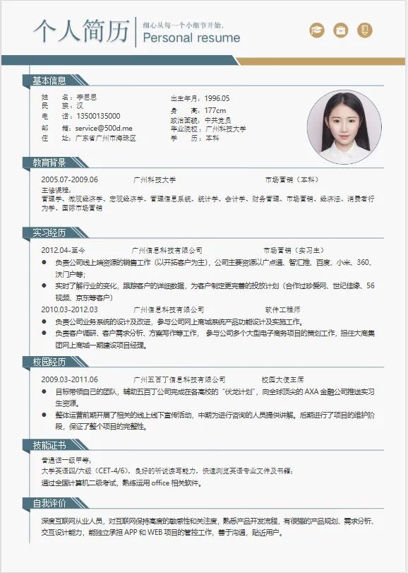 本文内容分享【个人简历模板】