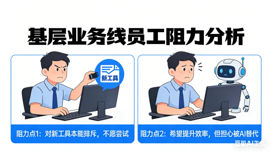 建立安全感:明确AI的“辅助工具”定位,仅替代重复性工作,复杂决策仍依赖人工,保障员工核心价值。