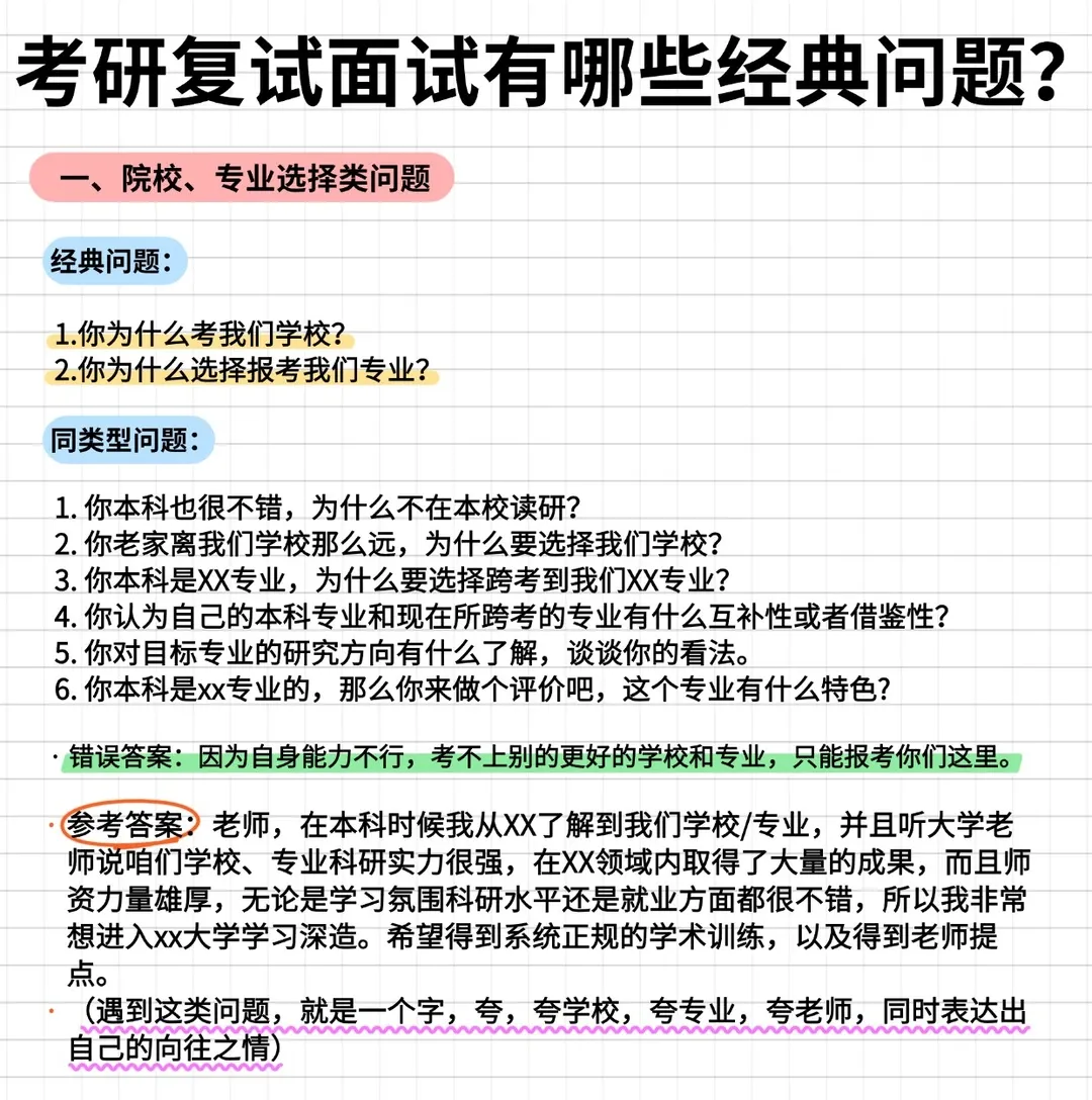 今天我们整理了6类必考问题,附错误雷区+高分模板,帮你把复试答出标准答案!