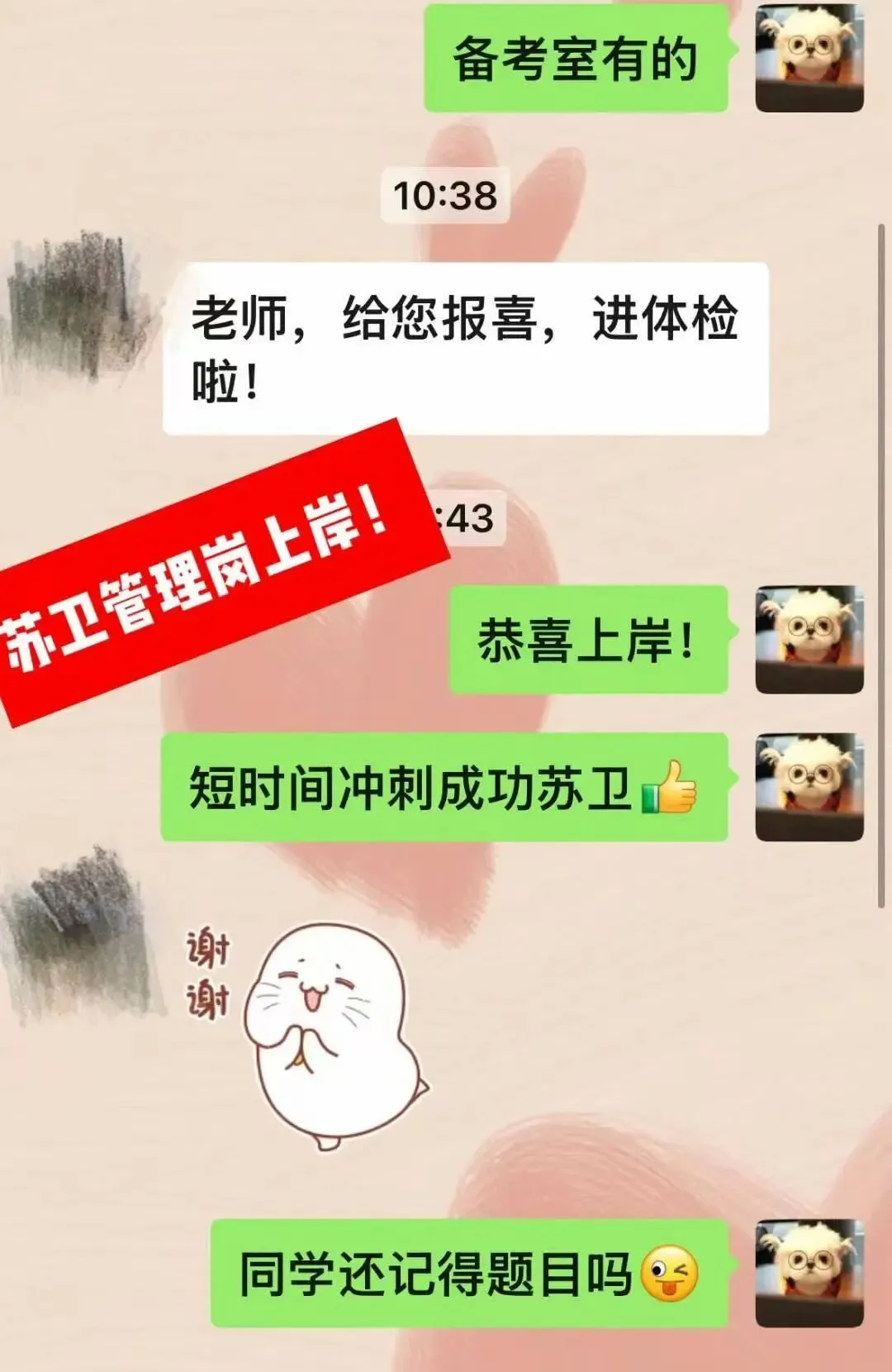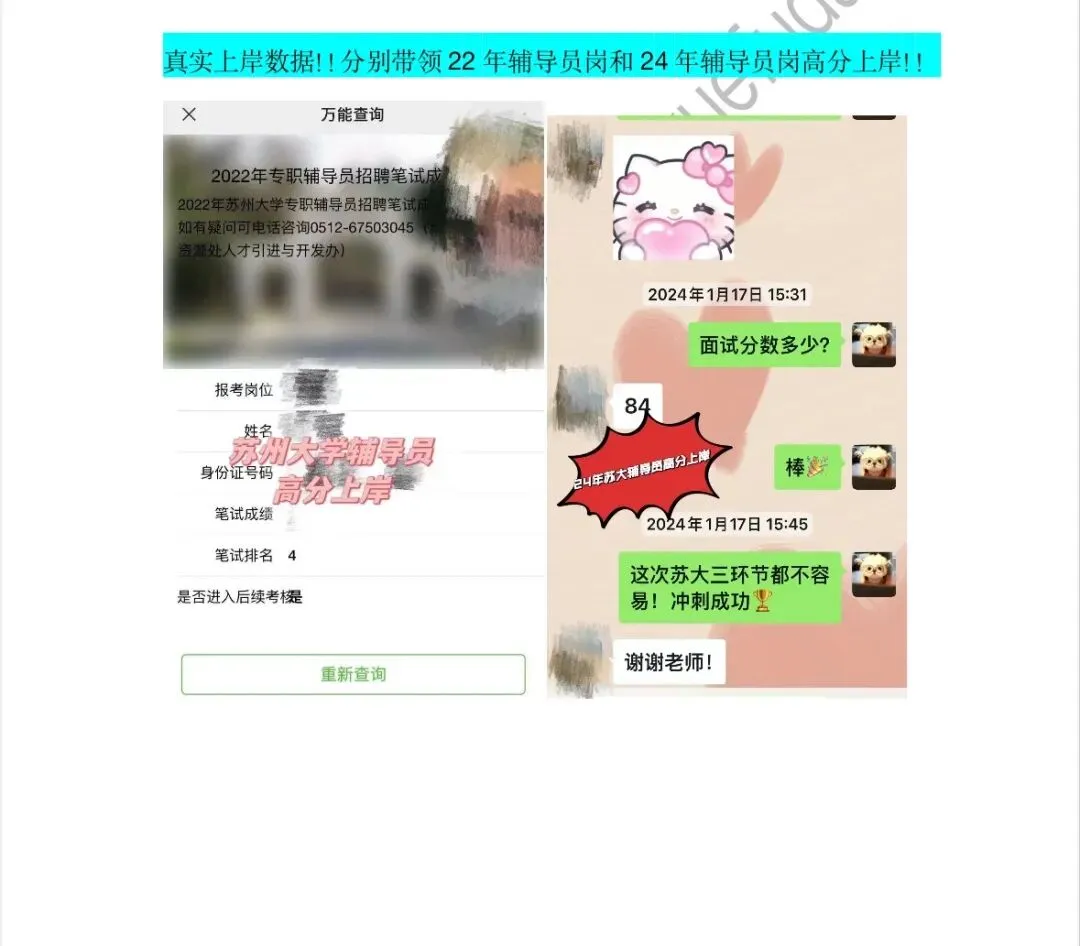 越越老师非常了解苏州考情!带过苏州非常多辅导员和管理岗上岸,苏大(2个)、苏科技、苏城、苏卫、苏经贸(4个)、苏健雄、苏工艺、苏信、苏工美等都带过上岸(真实数据提供抽查)🔥课程也是一直保障服务到上岸的!