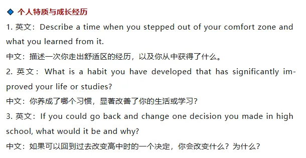 • Describe a meaningful experience that shaped who you are today.(描述一个对你影响深远的经历,它如何塑造了现在的你?)