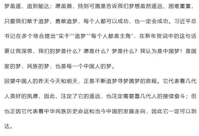 习近平总书记在2025年新年贺词中提到:“梦虽遥,追则能达;愿虽艰,持则可圆。”“中国式现代化的新征程上,每一个人都是主角,每一份付出都弥足珍贵,每一束光芒都熠熠生辉。”请你谈一谈对这段话的理解。