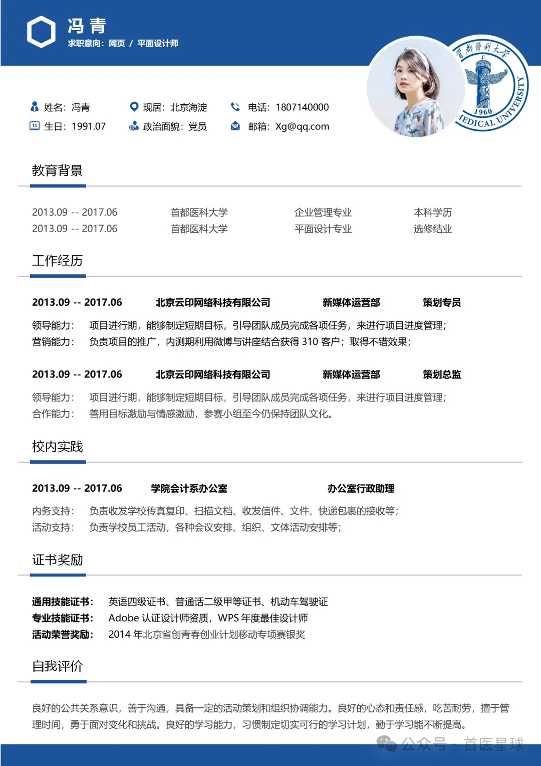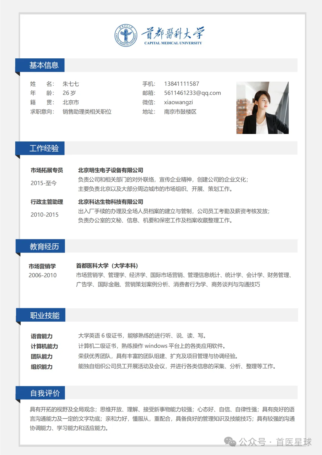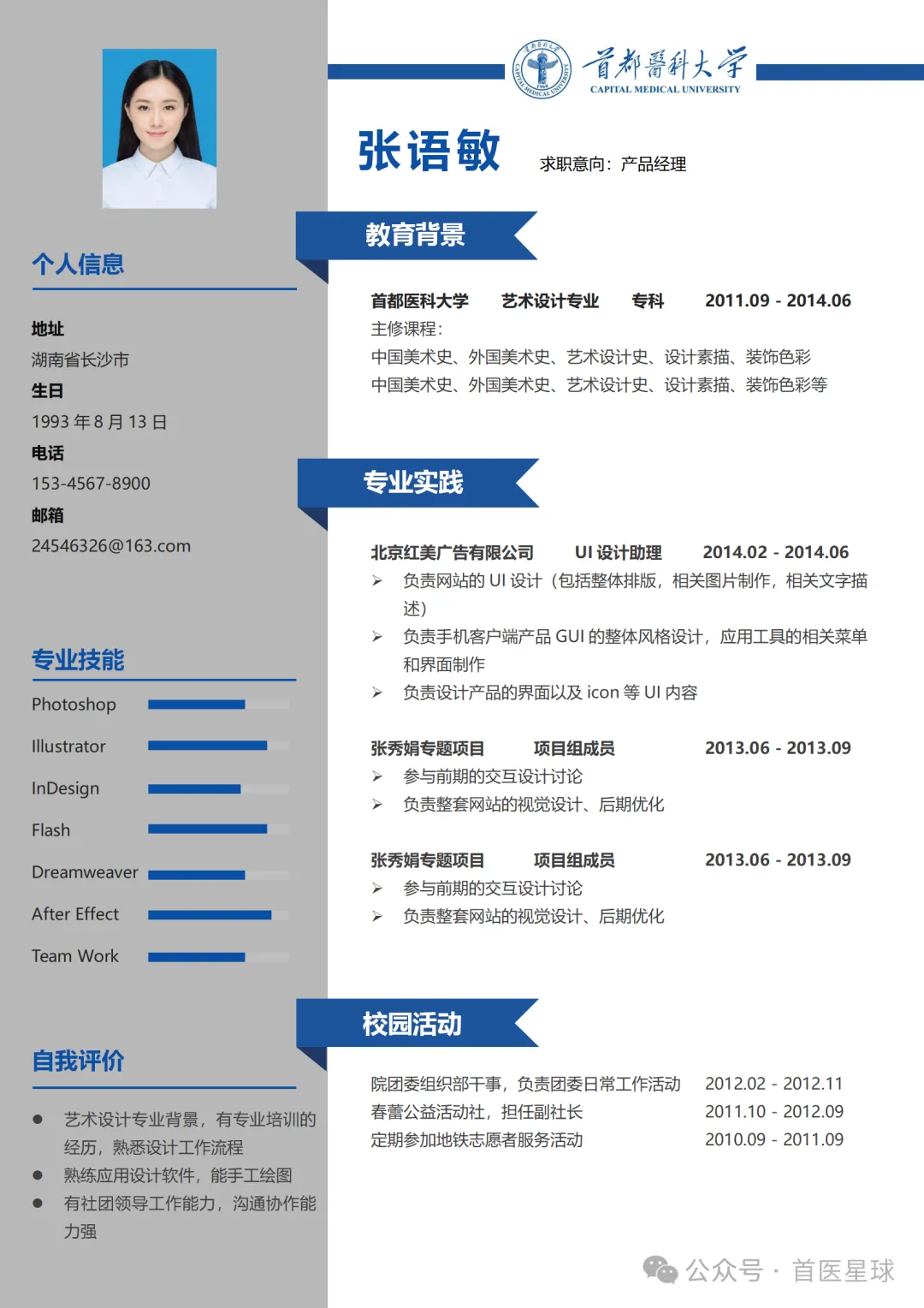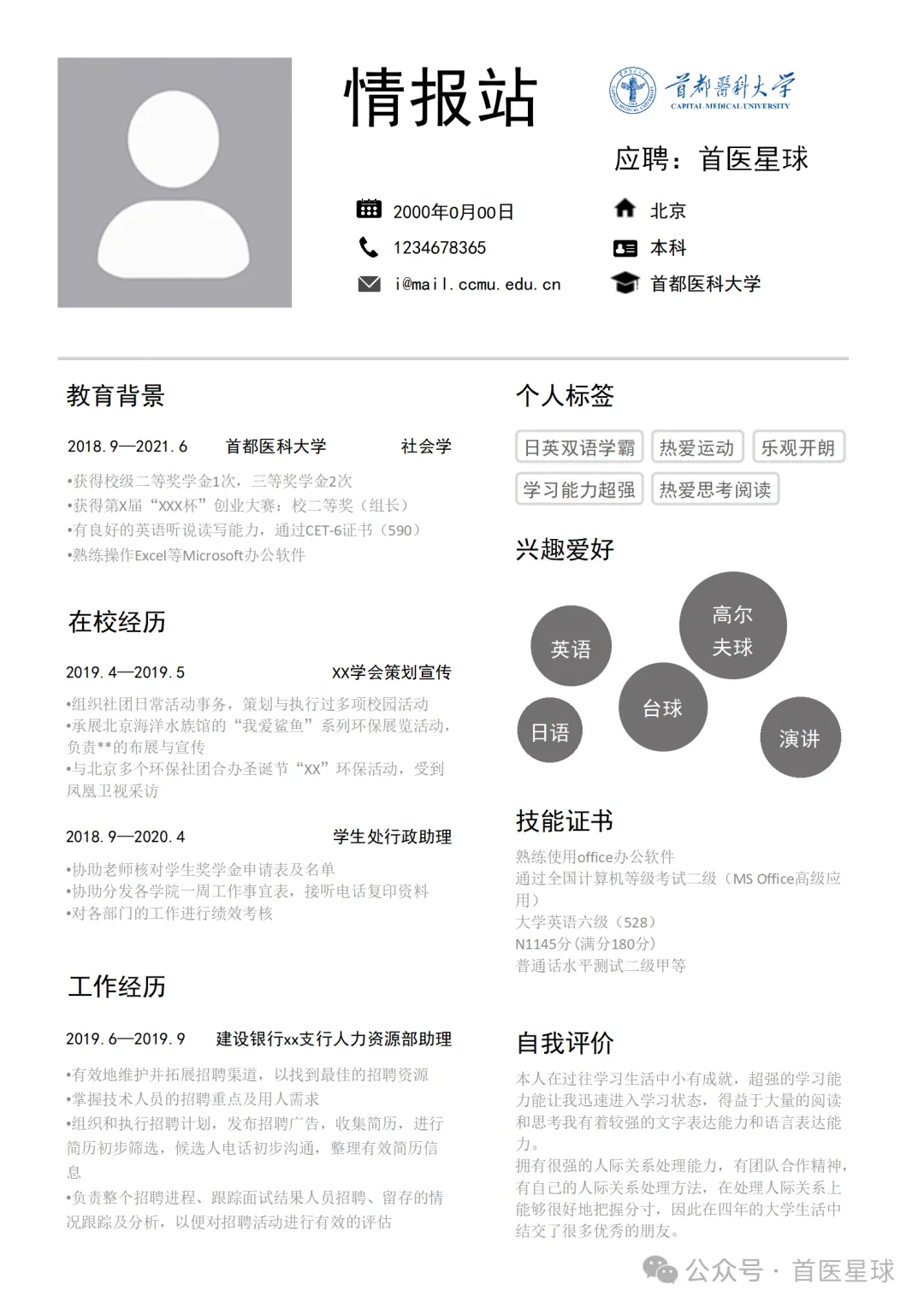 >首都医科大学简历模板~