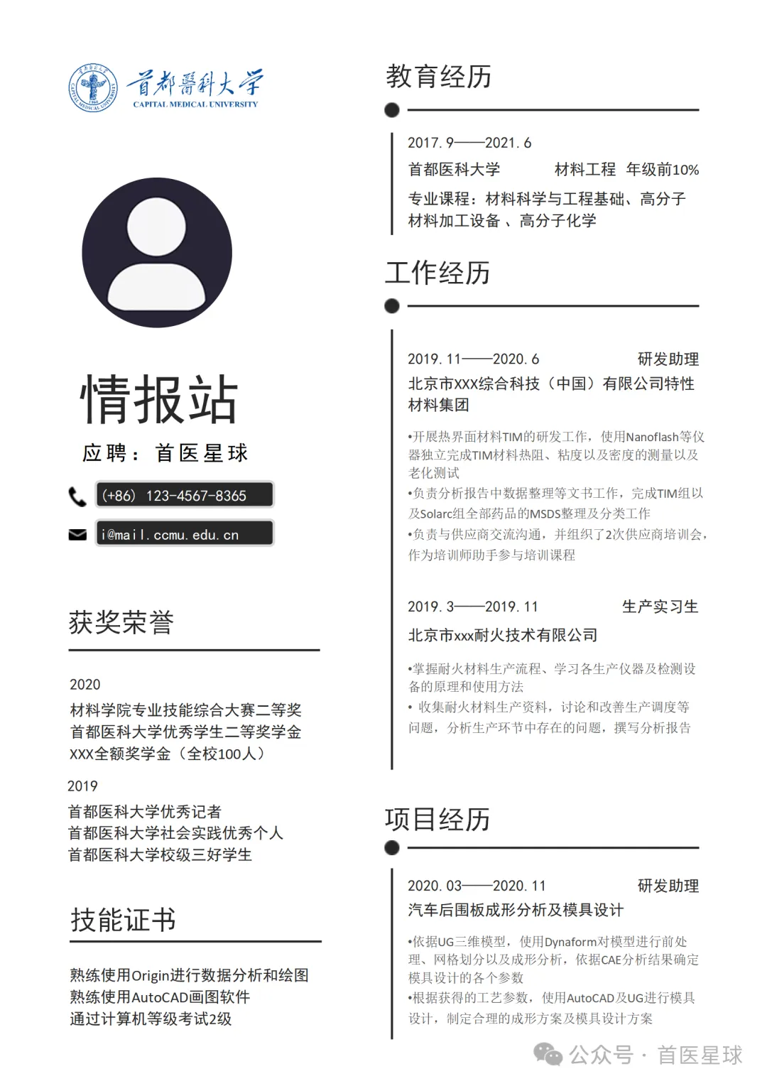 首都医科大学简历模板~