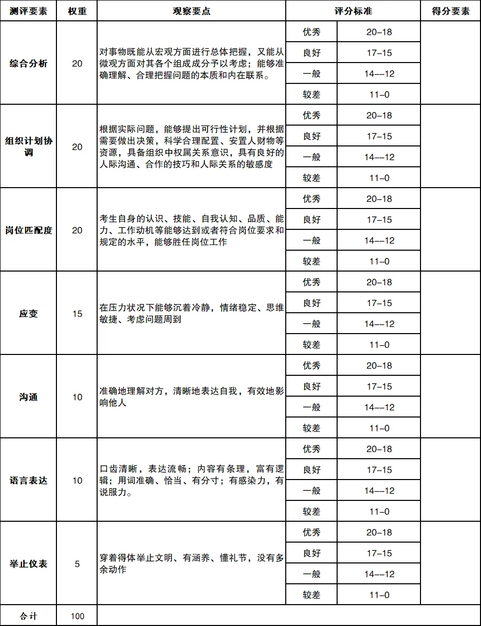 这张表格是从对于测评要素、考查亮点、评分标准等内容的总览,每个备考的同学都应该了解。