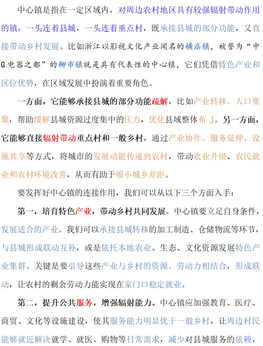 【25年浙江遴选面试真题】:谈谈对“中心镇是缩小三大差距桥梁纽带”的理解