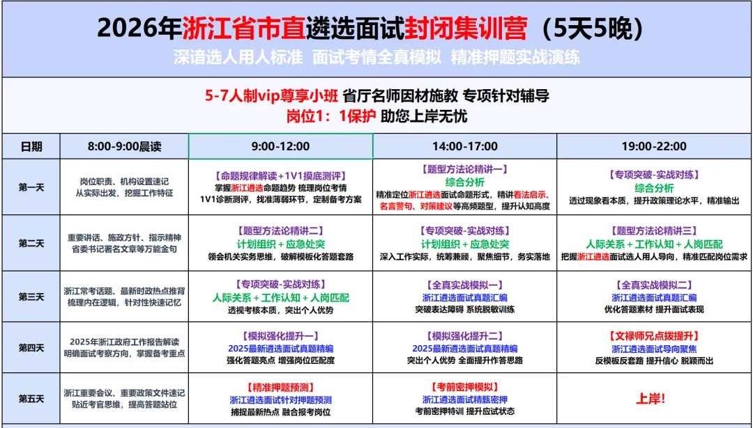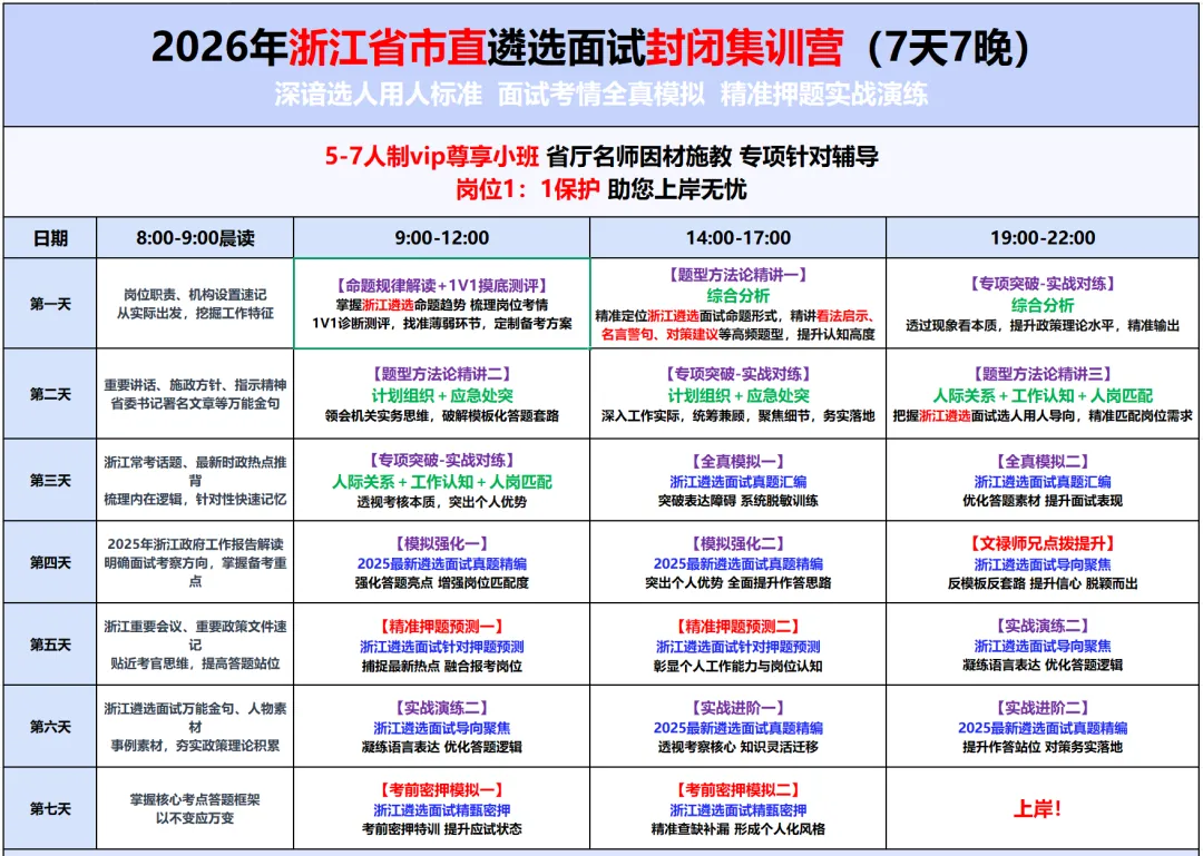 向上遴选推出【2026年浙江遴选5天5晚/7天7晚封闭集训营】