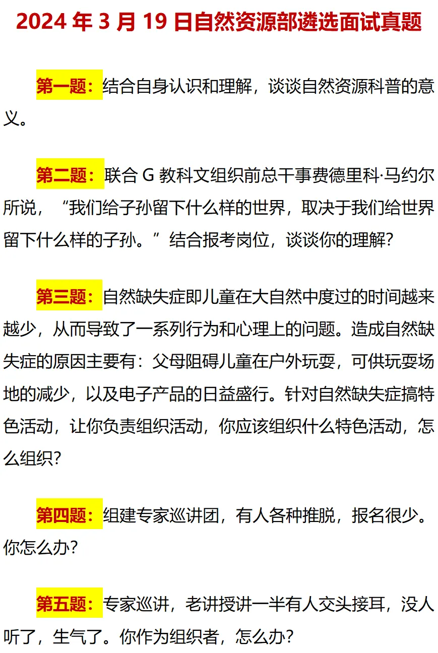 【部委面试真题】2024年3月19日自然资源部:自然科普的意义(附作答思路详解)