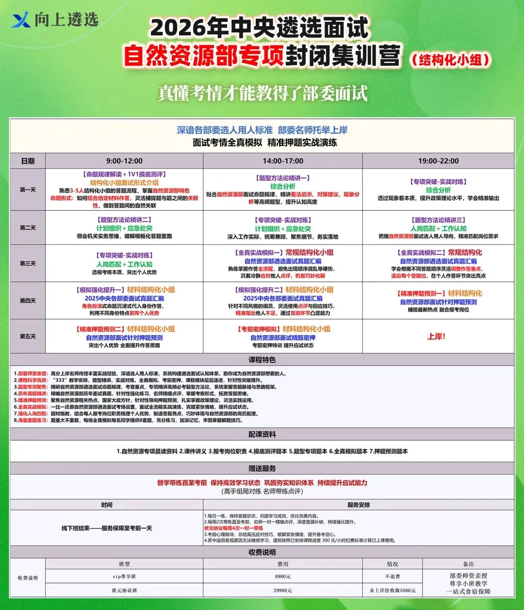 向上遴选推出【2026年中央遴选自然资源部专项封闭集训营】