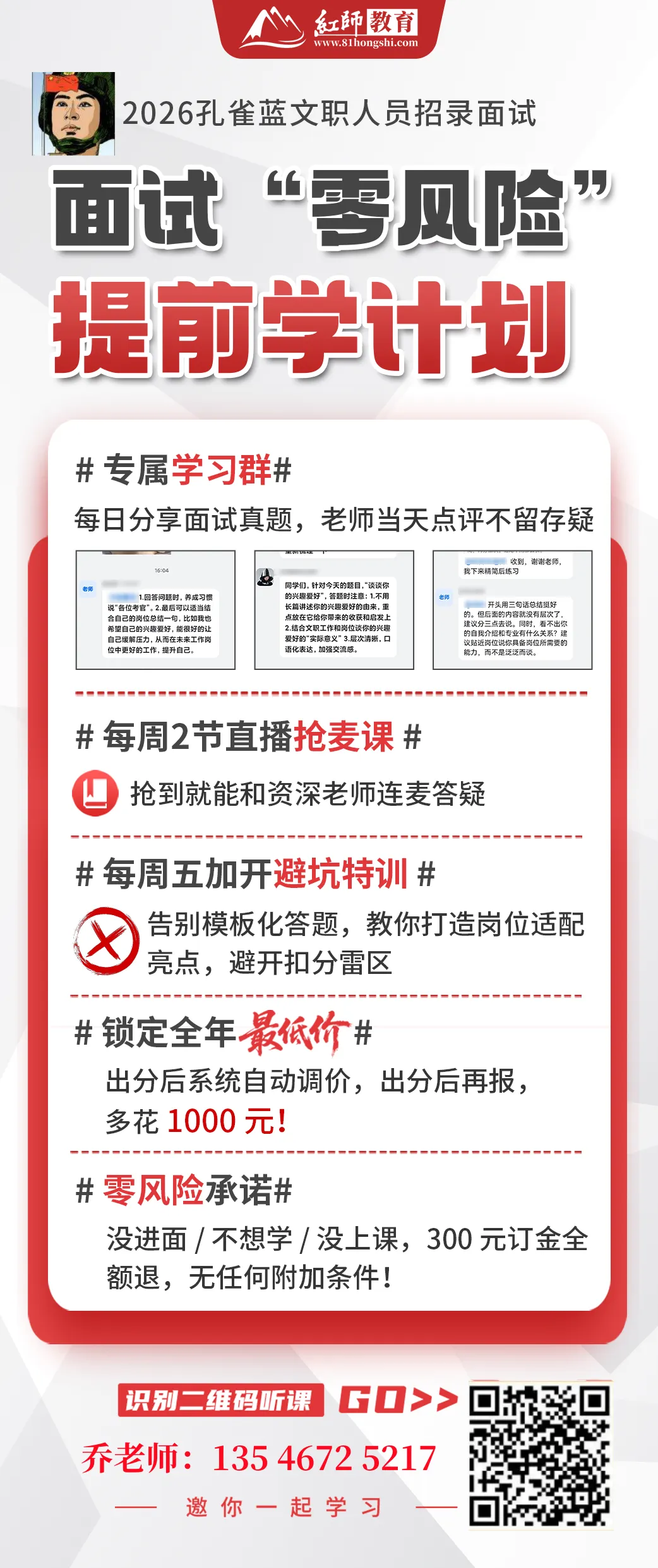 电话咨询红师教育乔老师:135 4672 5217(微信同)