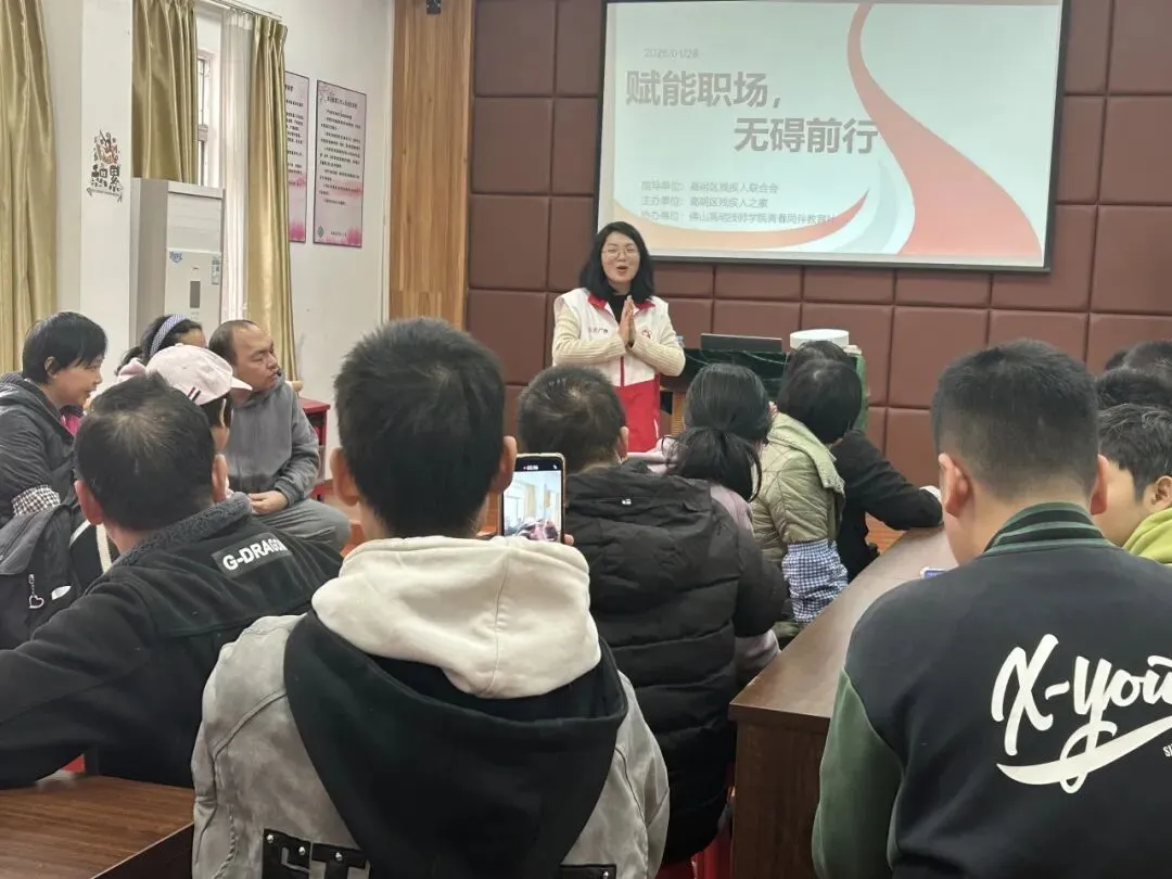 为助力残疾人更好地融入职场,1月28日,在高明区残疾人联合会的指导下,残疾人之家携手佛山高明技师学院青春同伴教育社,联合举办了面试技巧培训及应聘活动,共30名学员和社区残疾人共同参与了此次活动。