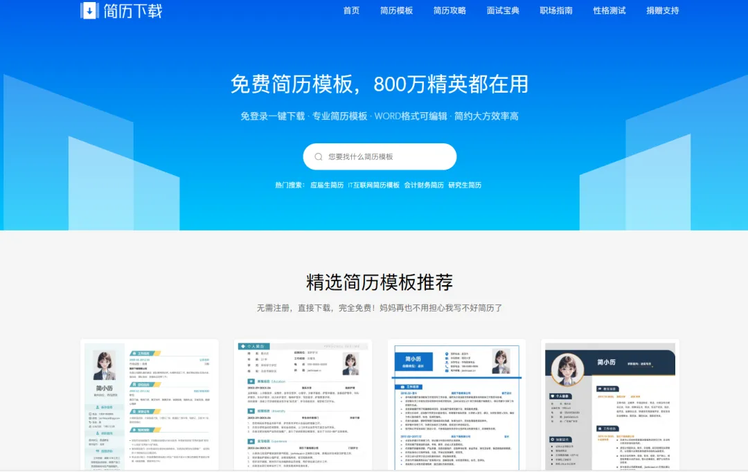 不用再为简历模板花钱,不用跟Word格式较劲,jianlixiazai.cn用免费高颜值模板+傻瓜式编辑,让你3分钟做出HR忍不住多看两眼的简历。