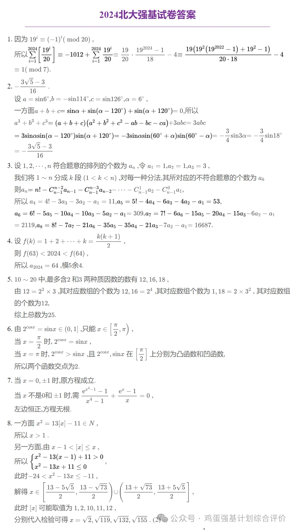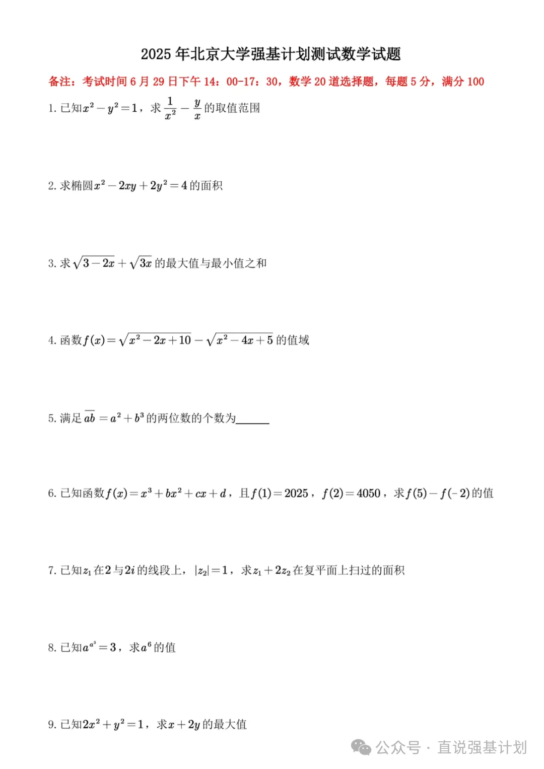 1:北京大学强基计划2020-2025年笔试真题及解答