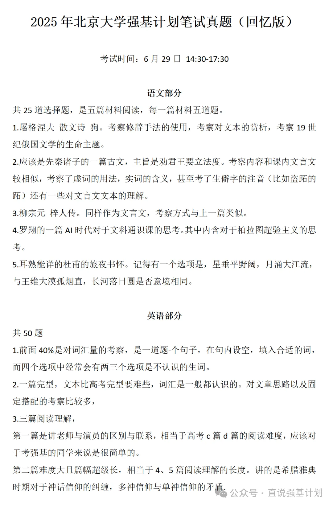 北京大学强基计划文科备考资料包含