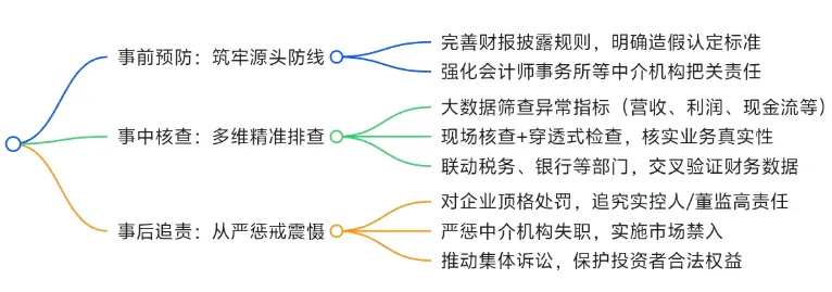 一方面完善财务信息披露规则,明确造假认定标准,让企业无漏洞可钻;另一方面压实会计师事务所、券商等中介机构的“看门人”责任,要求其对财报真实性进行层层审核,从源头减少造假可能。