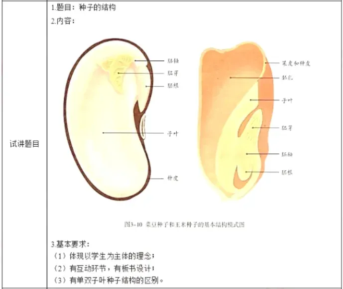 接着请学生代表进行板演,学生进行纠错补充,强调其最外层是种皮加果皮,即玉米种子的结构有子叶、胚芽、胚轴、胚根以及胚乳、种皮和果皮。