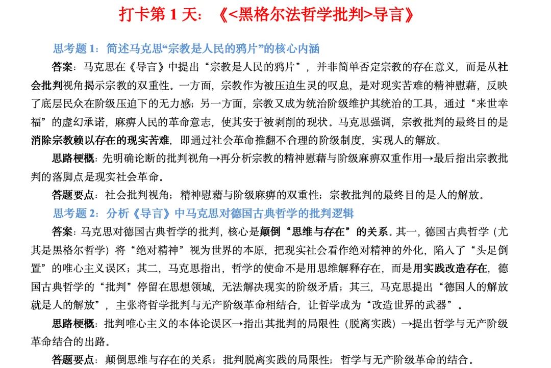 每日阅读原著,回答原著【本文】相关、【核心理论】相关、【学术热点】相关问题,问题包含清北人马院党院保研笔面试【真题】。1v1导师发放参考答题思路,予以针对性【批改、答疑】。